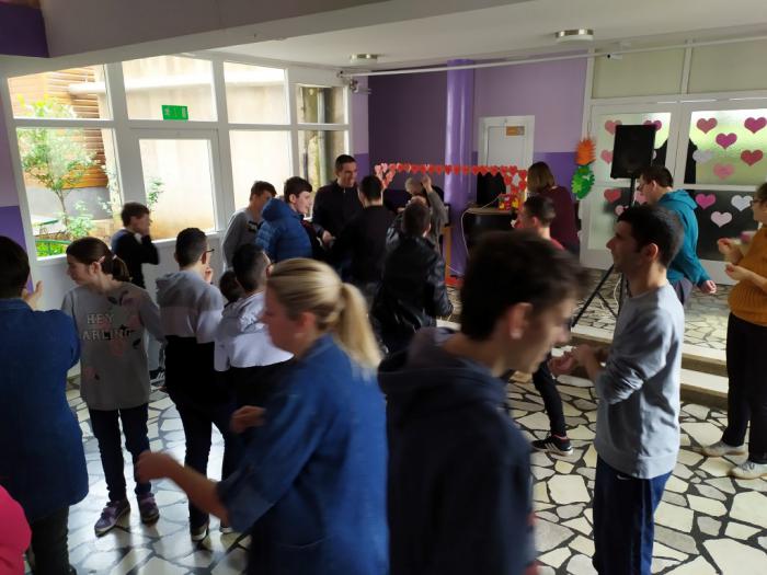U petak, 14. veljače 2020., naši su učenici i odrasli korisnici proslavili Valentinovo. Okupili su se u predvorju Centra i uz ljubavne pjesme zaplesali su svi, i oni zaljubljeni, i oni koji to nisu. Čitale su se poruke o tome što je uopće ljubav i Valentinovo, a neki su i dobili čestitke od svojih simpatija.