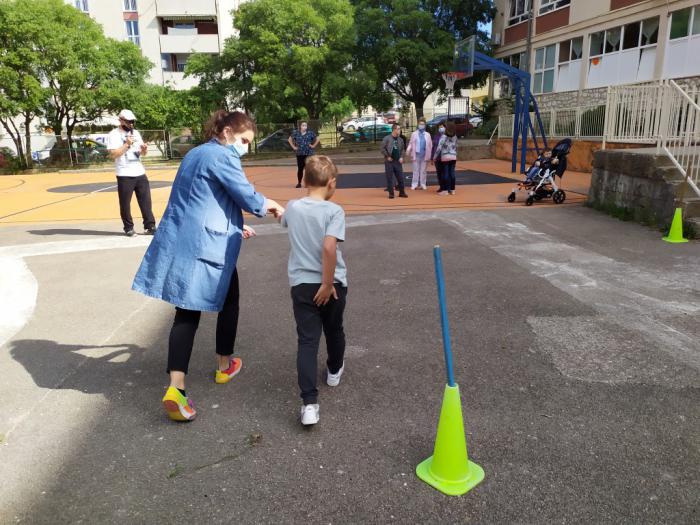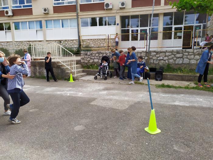 Tako smo se i danas okupili na našem igralištu i uz zvuke glazbe međusobno natjecali u sportskim aktivnostima: bacanju loptica u kolut i trčanju. Sportske aktivnosti nam je pripremio naš učitelj tjelesnog Jovo Krasić koji je bio i strog sudac, a učenicima u pomagali učitelji i asistenti, ali i drugi učenici. Na kraju je naša pedagoginja Marina Vrankulj ipak odlučila sve sudionike nagraditi slatkišima tako da su se veselili i pobjednici, ali i svi ostali.