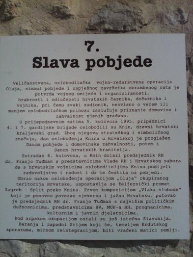 Povodom Dana neovisnosti polaznici VII. odgojno-obrazovne skupine s razrednicom Gordanom Ikicom posjetili su grad Knin. Upoznali su se s povijesnim i kulturnim znamenitostima grada i prisjetili se znanja o novijoj hrvatskoj povijesti.