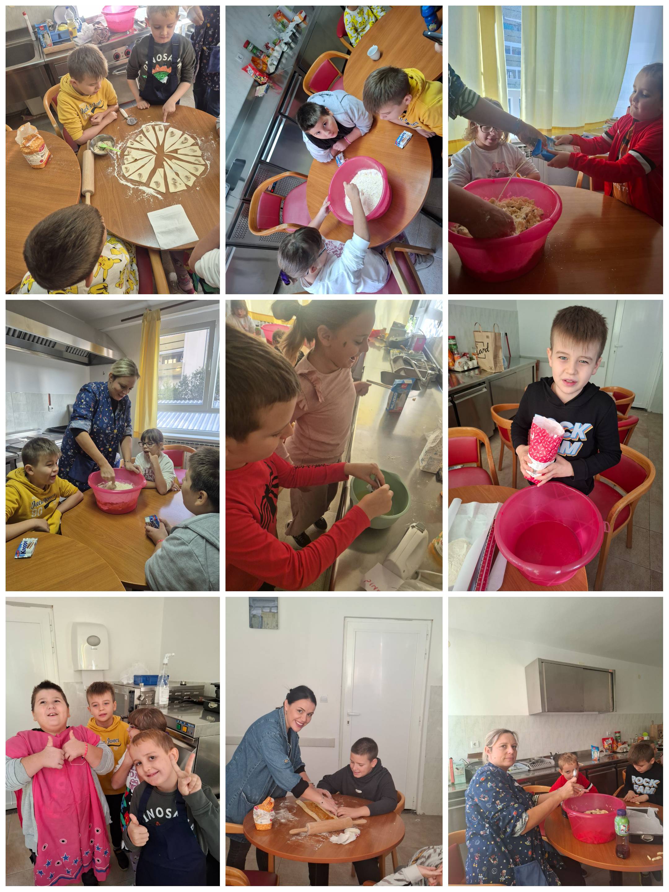 Iako su mali, naši učenici 2. i 3. razreda osnovne škole ipak su dovoljno veliki da bi se iskrali u kuhinjski kabinet. Naravno, sve pod budnim okom i uz podršku njihovih učiteljica Sanje i Dolores. Uz njihove upute i pomoć listopad su iskoristili za obilježavanje Dana kruha i zahvalnosti za plodove zemlje. Usavršavajući stare i učeći nove vještine razveselili su mnoge od nas koji smo im se našli na putu - nisu propustili ponuditi nas svojim slatkim pekarskim proizvodima!