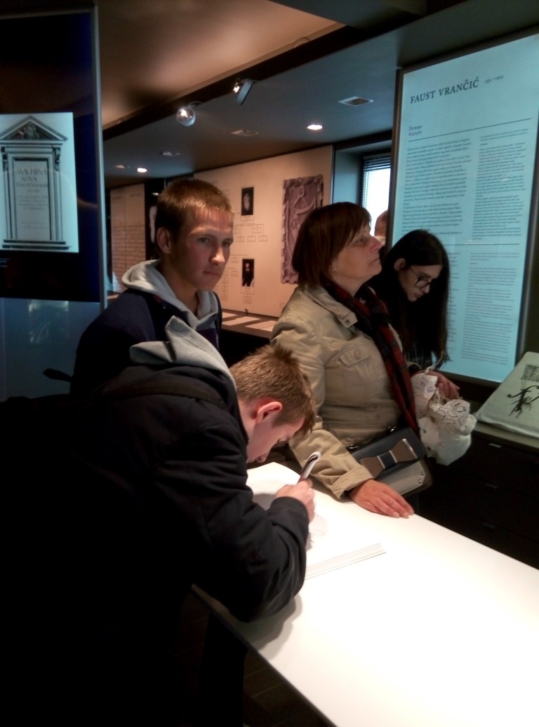 Domaćini su se pobrinuli za sve detalje pa smo energiju utrošenu na radionicama nadoknadili okrepom koju su za nas pripremili, a zatim se otputili u posjet Memorijalnom centru Faust Vrančić. Nakon igranog filma o Faustovu djetinjstvu, razgledali smo modele njegovih izuma i upisali se u knjigu dojmova.