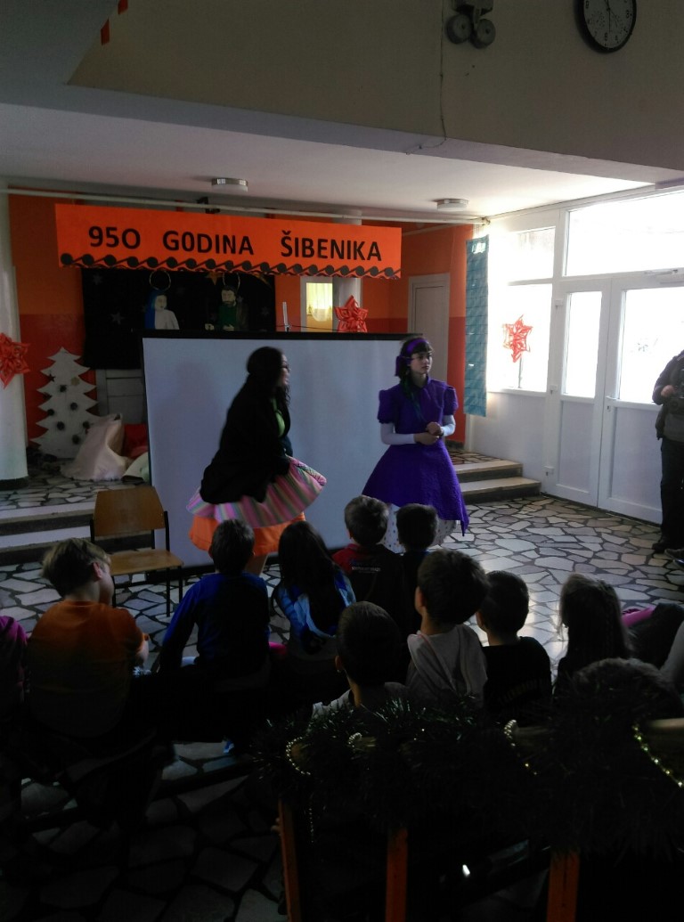 Naše učenike, korisnike i djecu iz dječjih vrtića "Šibenski tići" i "Vjeverica" posebno je oduševila prigodna izvedba predstave "Snježna kraljica" zadarskog Teatra Dragon.