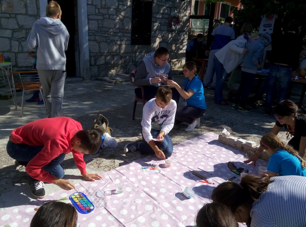 Po dolasku u Prvić Luku učenici su sudjelovali u dvije radionice: keramičarskoj radionici u kojoj su se imali priliku likovno izraziti bojeći keramičke magnete s likom Fausta Vrančića i u radionici termotiska u kojoj su odabirali likove i pisali poruke koje su potom otisnute na njihove majice. I magnete i majice učenici su ponijeli kući za uspomenu, što ih je posebno razveselilo.
