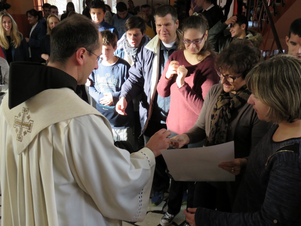 U petak, 8. prosinca 2017., Centar je posjetio fra Mario Radman, župnik Župe Šubićevac. Nakon blagoslova, uslijedila je zajednička molitva s učenicima, korisnicima i radnicima Centra, a zatim je fra Mario predao slatke darove za djecu ravnateljici Branki Bego i vjeroučiteljici Mirjani Radak.