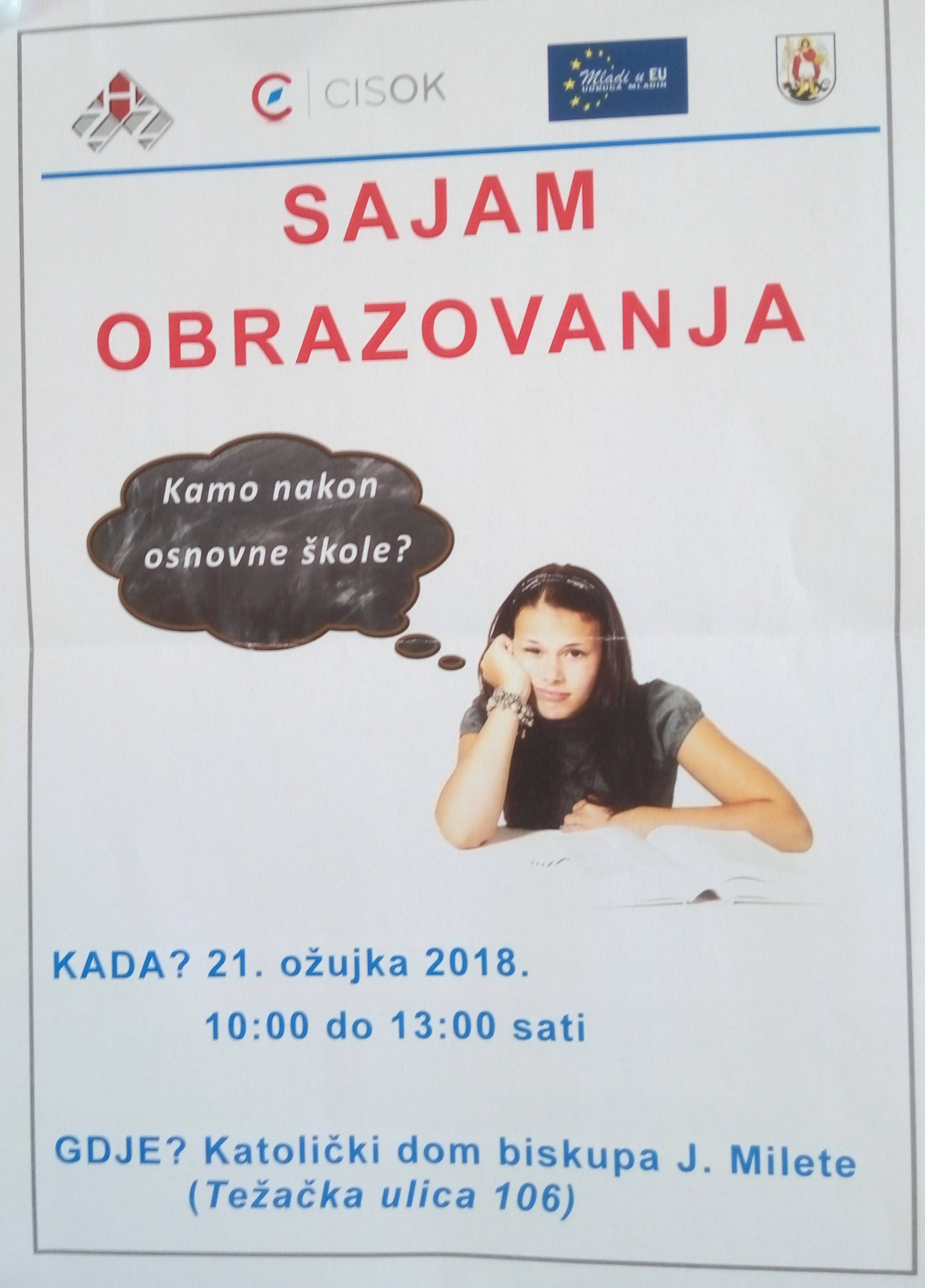 Pozivamo sve učenike i njihove roditelje zainteresirane za upis u Srednju strukovnu školu Centra "Šubićevac" da nas posjete na Sajmu obrazovanja.