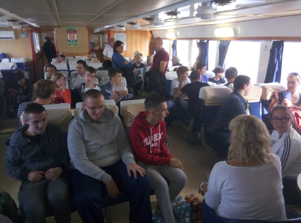 S nestrpljenjem su dočekali poziv i u petak, 5. listopada 2018., treću godinu za redom krenuli put otoka Prvića u pratnji pedagoginje Marine Vrankulj, učitelja Jove Krasića, Ivane Miškić i Ivane Vrljac, medicinske sestre Nede Bralić i dviju majki učenika. Put na Prvić uvijek je poseban i po tome što se do njega stiže brodom, a to je nekim učenicima jedina prilika za uživanje u takvoj vrsti prijevoza. Za veliku gužvu na brodu nije bio odgovoran samo naš Centar, društvo su nam pravili učenici Industrijsko-obrtničke škole Šibenik i osnovnih škola Brodarica i Zlarin koji su se na Prvić uputili po istom poslu kao i mi.