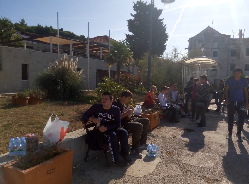 Po dolasku u Prvić Luku učenici su se odmah okrijepili marendom da bi prikupili snagu za sudjelovanje u uvijek kreativnim radionicama.