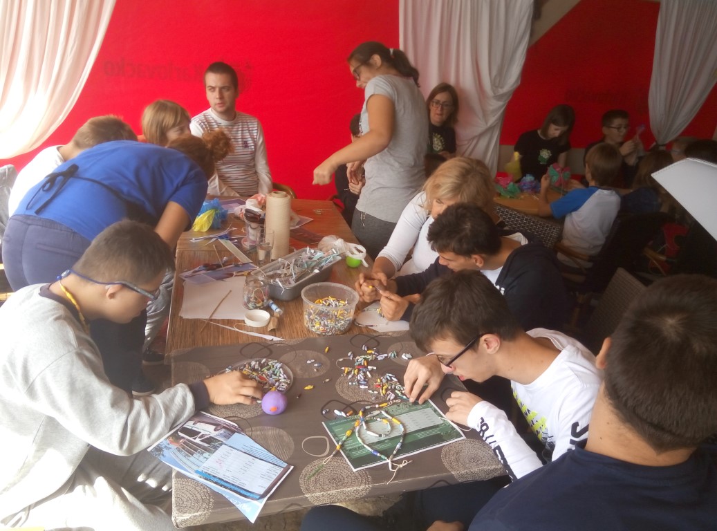 U ekološkoj radionici Nacionalnog parka Krka izrađivale su se šarene narukvice i ogrlice od špage i zamotanih papirića.