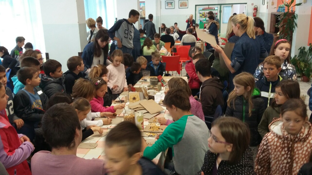 Učiteljice Marina Burazer, Ana Parać, Ana Blaić, Marijana Rupić, Lana Jurišić i volonterka Julijana Mašina izrađivale su s djecom prigodne ukrase.