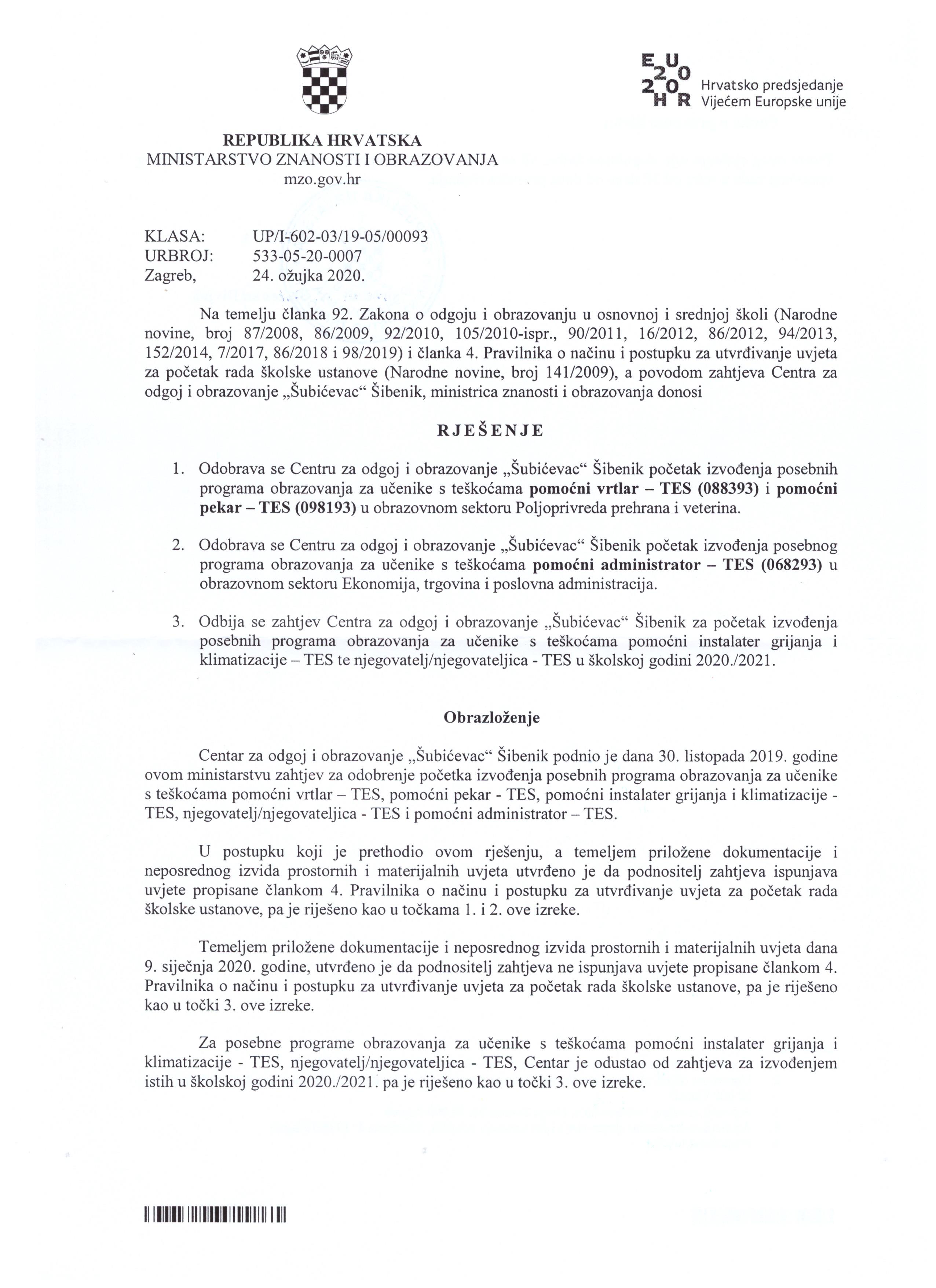 Centru "Šubićevac" odobrena nova srednjoškolska zanimanja - pomoćni vrtlar, pomoćni pekar, pomoćni administrator