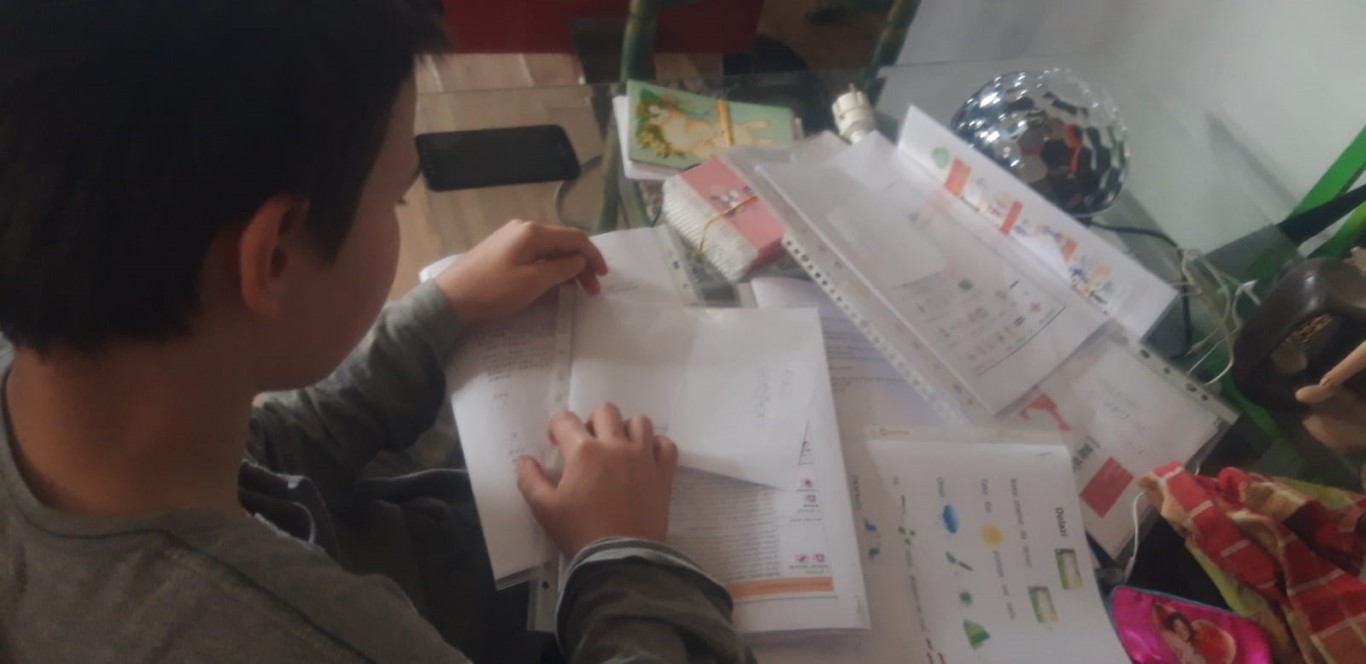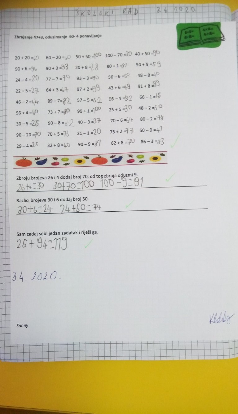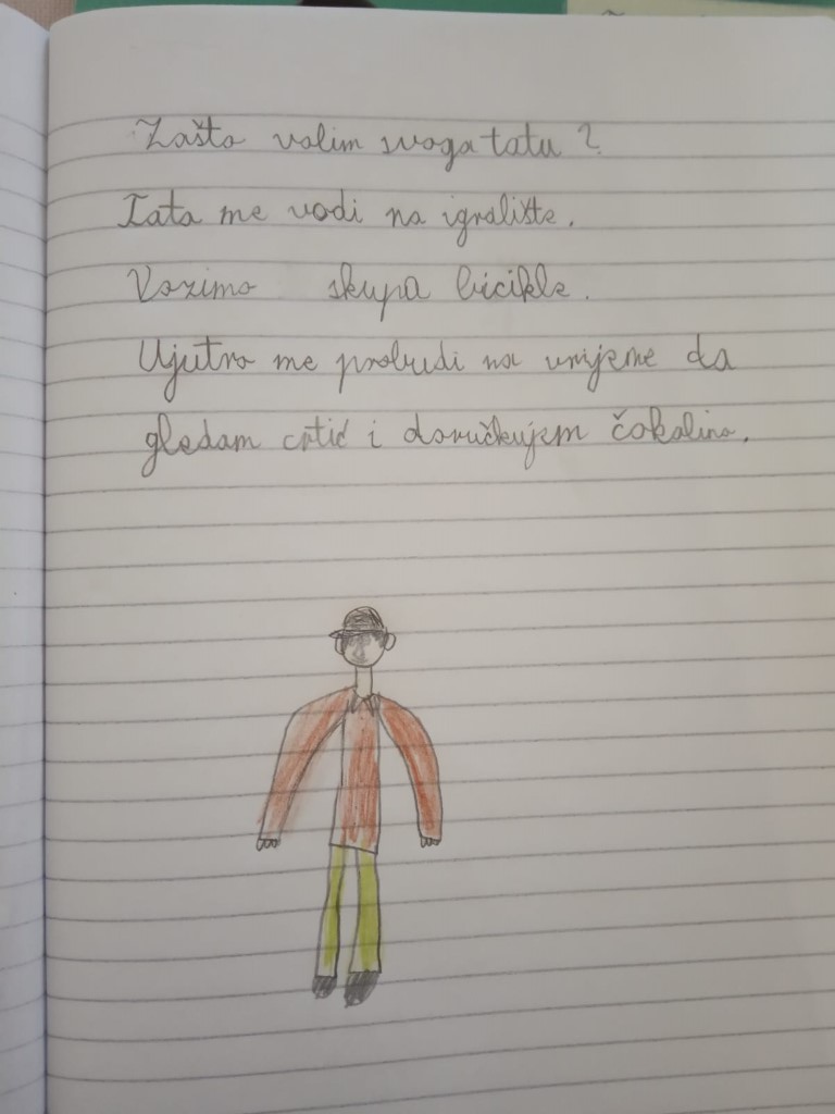 Svi naši učenici, i oni kod kuće i oni u školi, marljivo rade, ispunjavaju listiće, pišu u bilježnice, rješavaju zadatke na računalima, bojaju, lijepe, vježbaju motoriku – tko kako može i zna.