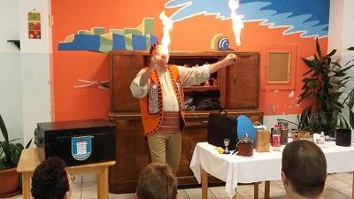 Predstava je započela oponašanjem glasova raznih životinja, a nastavila se mnoštvom zanimljivih mađioničarskih trikova koji su zadivili sve gledatelje, a posebno djecu koja su sudjelovala u izvođenju.