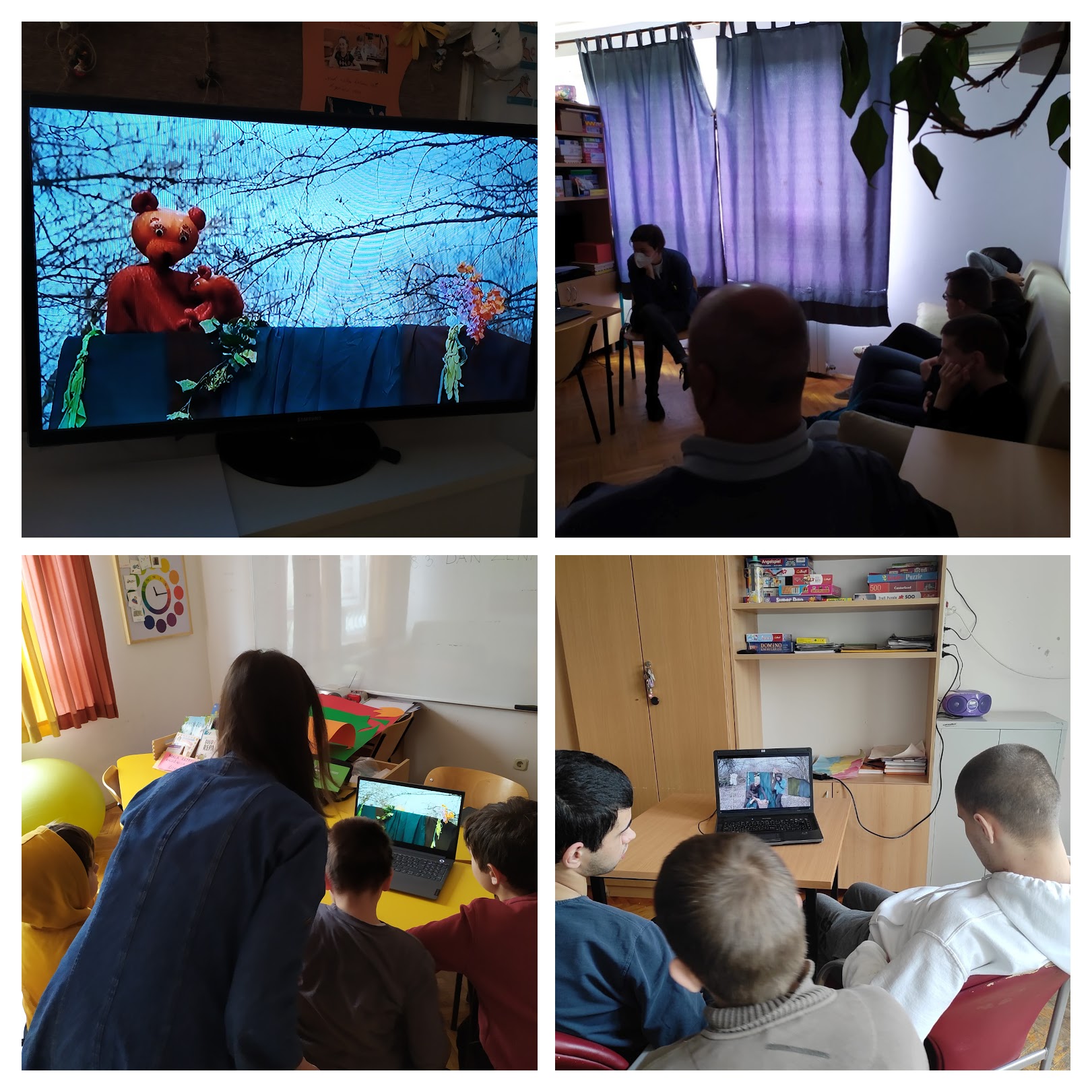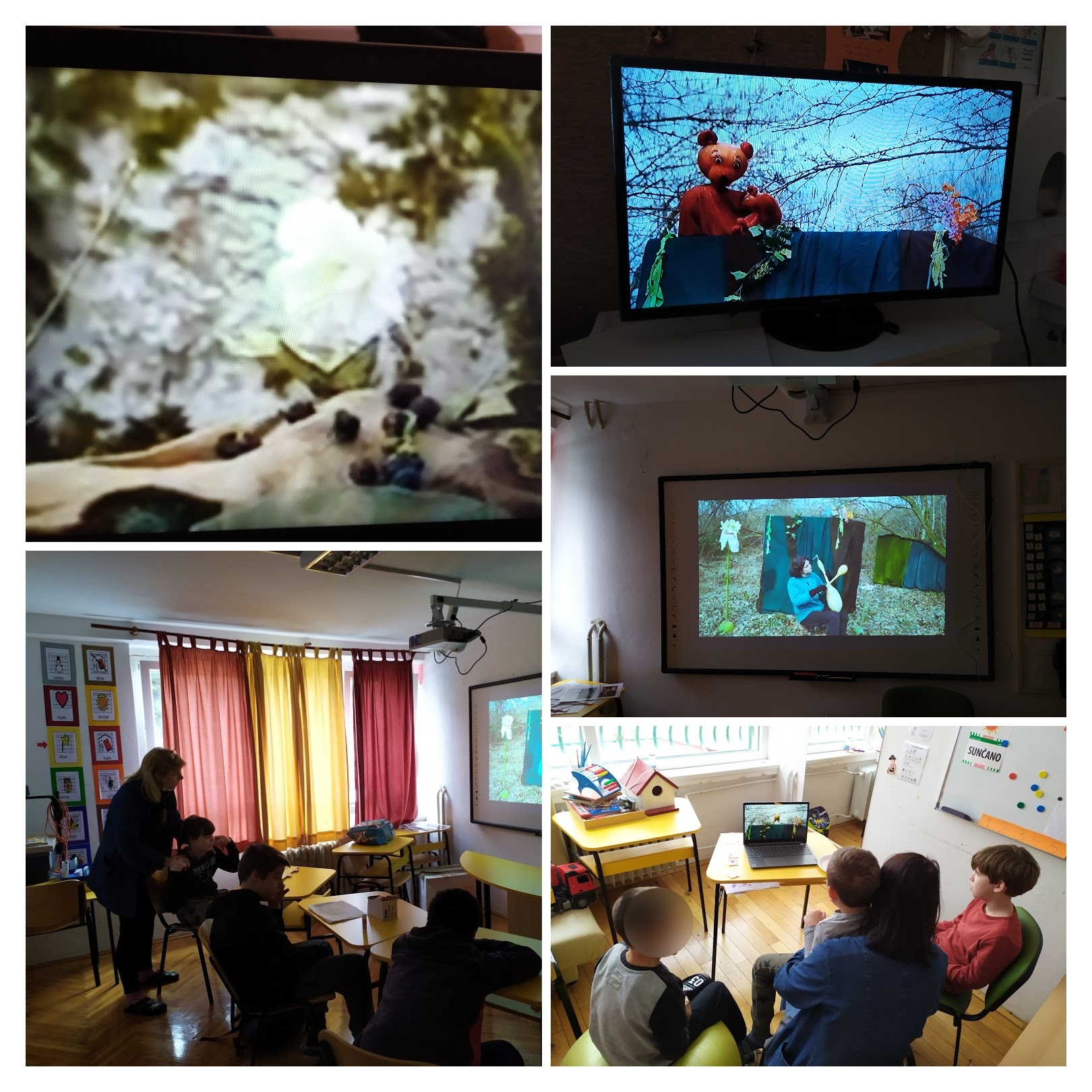 Rečeno - učinjeno, u utorak, 9. ožujka u naše su učionice na prijenosna računala, televizore i pametne ploče stigli glumci i lutke zagrebačkog Lutkarskog studija Kvak i odigrali predstavu Čarolija godišnjih doba.