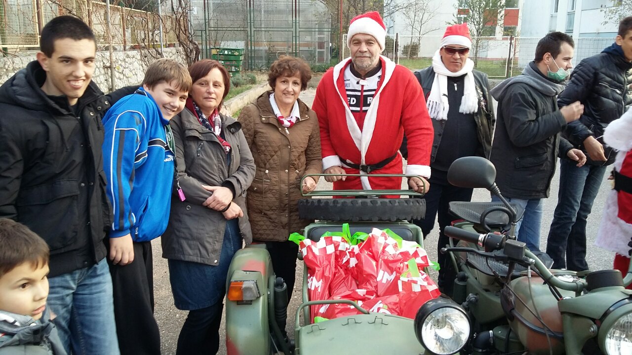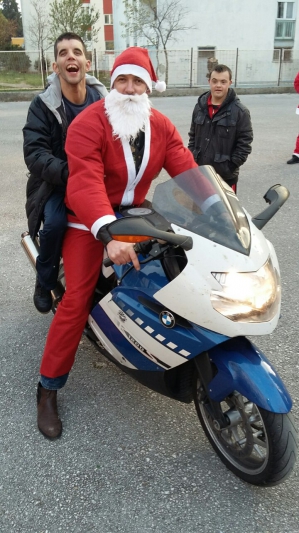 Svi smo bili nestrpljivi, a kada su se začuli dobro poznati zvuci truba i sirene i povorka konačno stigla – veselje i oduševljenje doseglo je vrhunac. Prerušeni u Djedove Božićnjake provozali su sve zainteresirane na svojim motorima i podijelili slatke pakete.