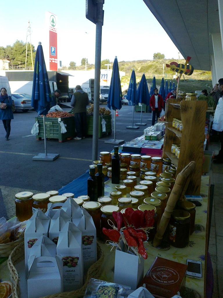 Ove subote naše su prodavačice bile nastavnica Tehnologije cvjećarstva Anamarija Zjačić, stručna učiteljica Branka Goger, učenica Martina Gulin i bivša učenica Mihaela Šprljan. U ponudi su bili naši, već prepoznatljivi sušeni proizvodi: jabuke, kruške, naranče, rajčica, smeđi šampinjoni, bukovače, čili, lavanda, ružmarin i lovor.
