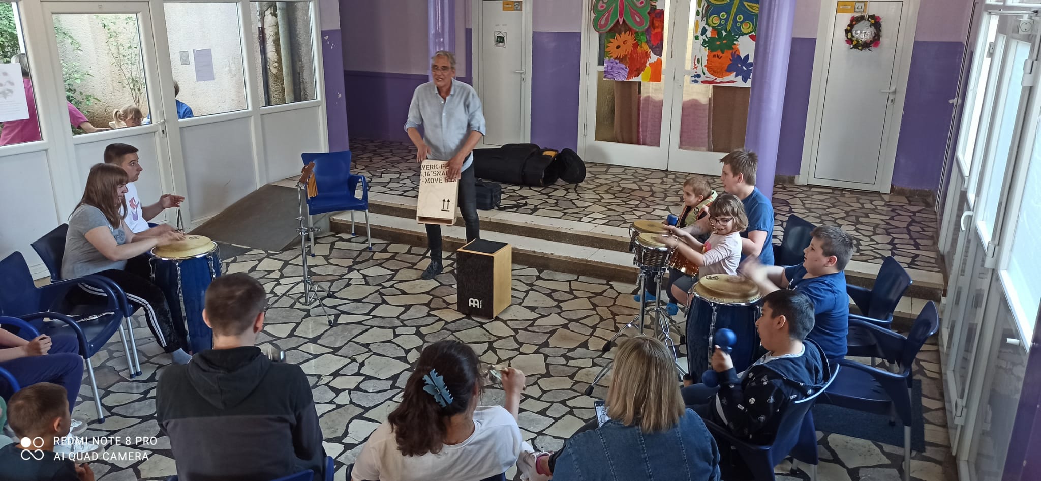 Voditelji Joško Škarica i Dorijan Škarica za naše su učenike održali glazbenu radionicu Uhvati ritam i omogućili nam da okušamo svoje talente u sviranju različitih instrumenata.