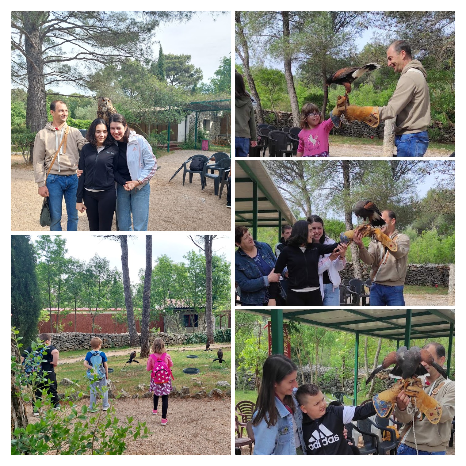 Prvo su posjetili jedini centar u Hrvatskoj u kojemu se mogu vidjeti različite vrste ptica grabljivica - Sokolarski centar. Tamo su im sokolari prenijeli zanimljive podatke o tome što ptice grabljivice jedu, kako spavaju, kako se skrivaju, a zatim su sovu, jastreba i sokola mogli i osobno upoznati - hraniti ih i fotografirati se s njima.