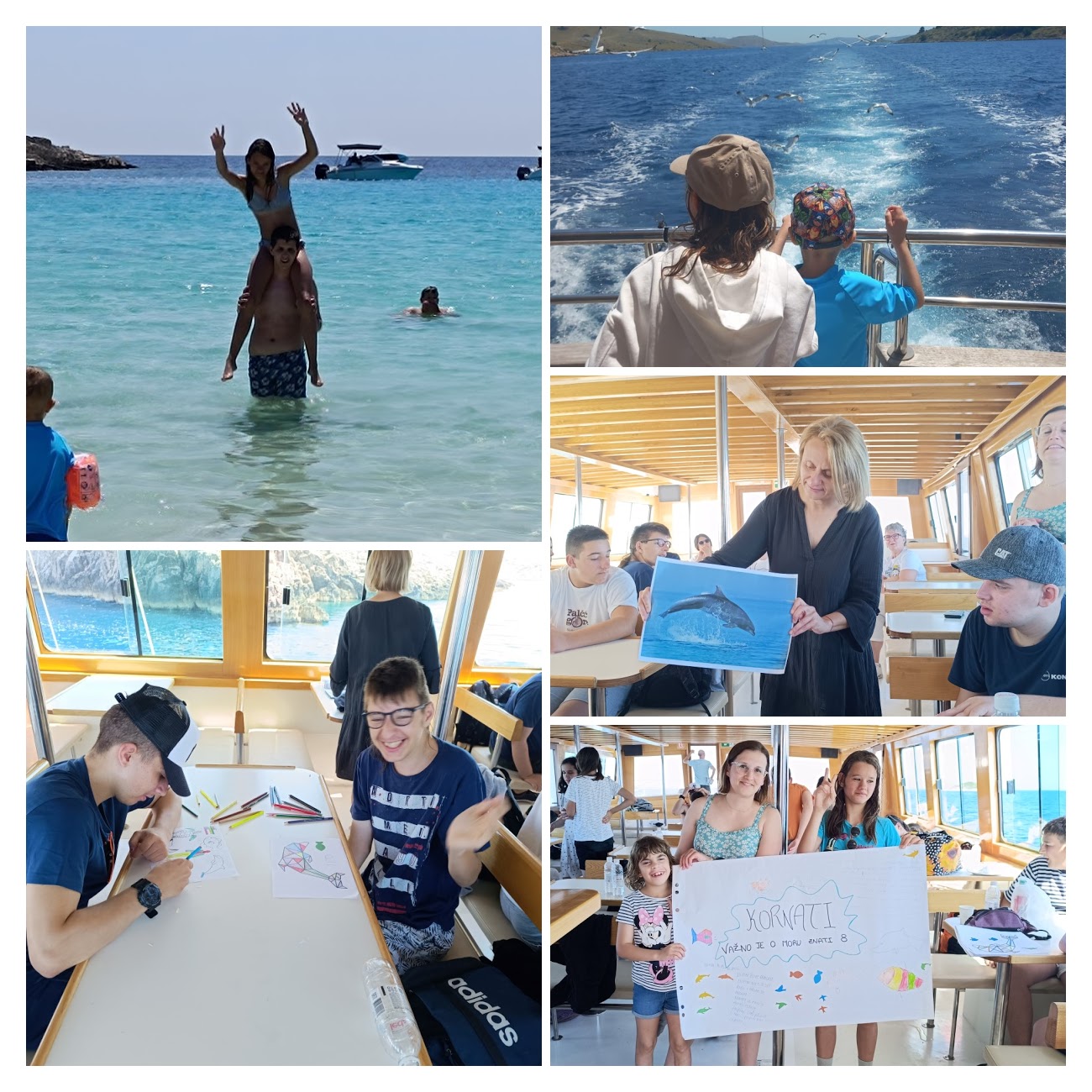Profesorice Veterinarskog fakulteta u Zagrebu održale su nam vrlo poučnu radionicu o dupinima tijekom vožnje, rješavali smo zadatke, crtali i bojili, a posebno smo uživali u pogledu i međusobnom druženju.