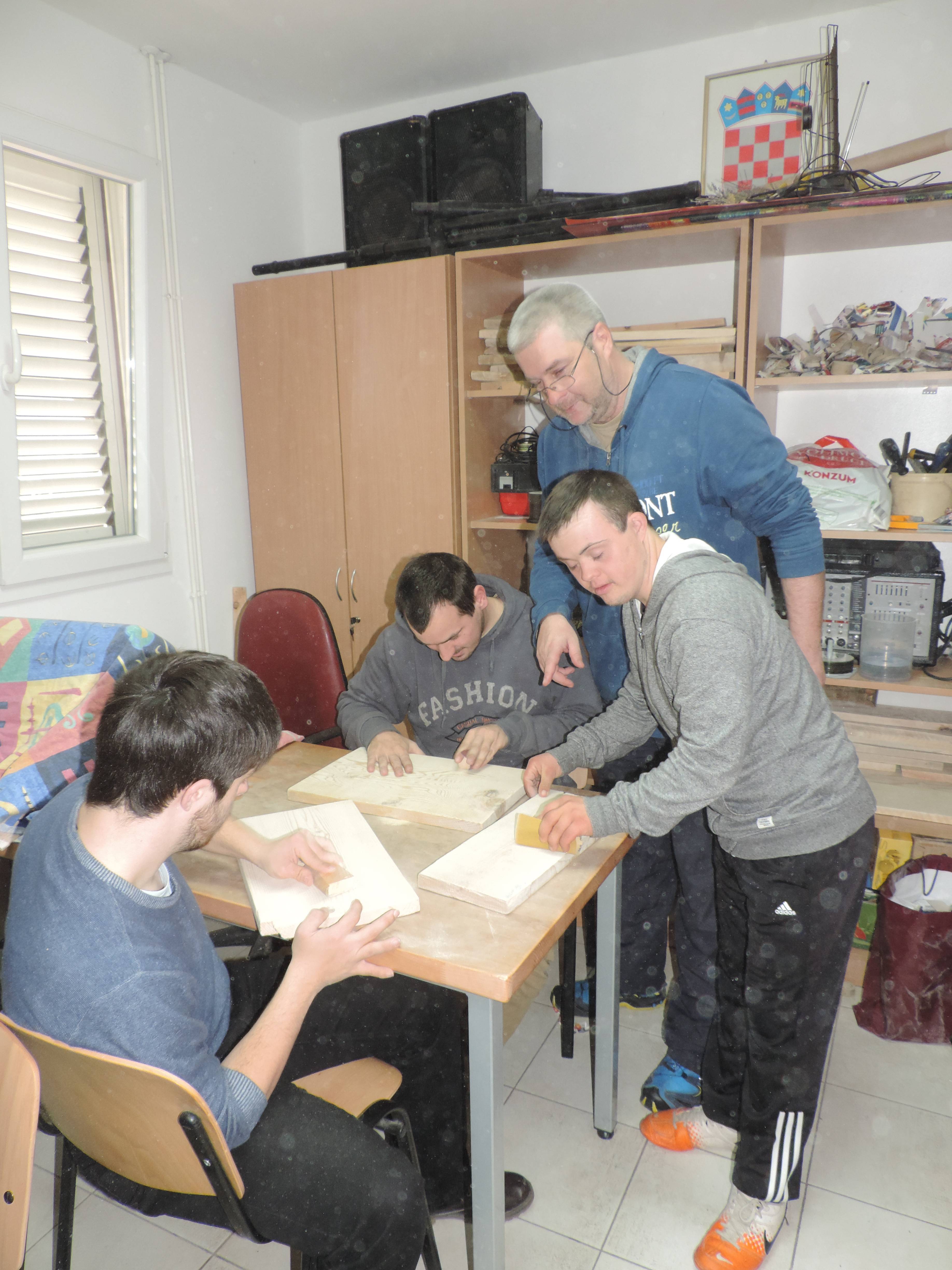 U boravku za odrasle radni instruktori u suradnji sa stručnima radnicima Centra rade na razvijanju radnih i kulturno-higijenskih navika korisnika, razvijanju sigurnosti u svakodnevnim situacijama, razvijanju primjerenih oblika ponašanja u poznatim i nepoznatim situacijama, upoznavanju uže i šire okoline, pomaganju u obavljanju svakodnevnih poslova, uređenju unutarnjeg i vanjskog prostora boravka. Poseban je naglasak na radnim i sportskim aktivnostima. Korisnici su, ovisno o željama, uključeni u različite radionice: stolarsku, kreativnu, domaćinsku, informatičku, u rad u sušari i plasteniku te u radionicu glačanja.