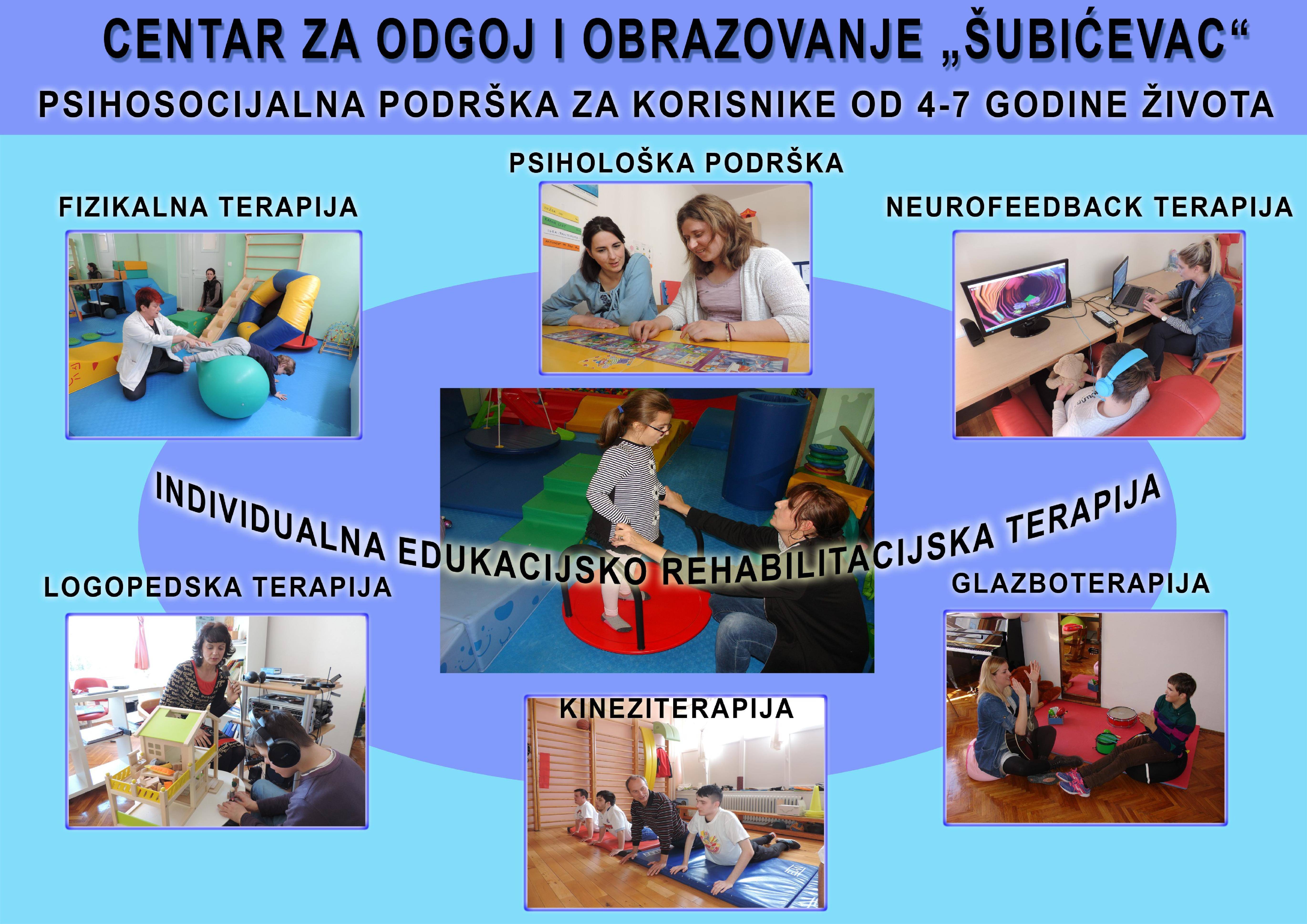 Program psihosocijalne podrške uključuje individualnu rehabilitacijsku edukaciju, grupnu edukacijsku rehabilitaciju, logopedsku terapiju, psihološku podršku, kineziterapiju, fizikalnu terapiju, glazboterapiju i Neurofeedback terapiju.