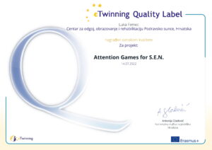 Po prvi puta dobili smo dvije oznake kvalitete za provođenje međunarodnih projekata Attention games for S.E.N. i I am here with cooperation. Oznaka kvalitete dodijeljuje se učiteljima i učenicima koji su surađivali na izvrsnim eTwinningovim projektima. Veliko bravo!
