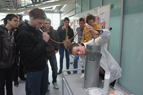 Tijekom velikog odmora, na školskom hodniku, učenici 2. e razreda jezične gimnazije mjerili su vitalni kapacitet pluća ostalim učenicima Škole. Rezultate su upisali u četiri različita stupca ovisno o tome jesu li učenici pušači, nepušači, sportaši pušači ili sportaši nepušači. Najveću vrijednost mjerenja imali su učenici sportaši, i to plivači. Najveća zabilježena vrijednost bila je 5400 mL. Ispitali su ukupno 34 učenika, a srednja vrijednost vitalnog kapaciteta pluća kod učenika bila je 4000 mL. Najviše je učenika nepušača, ali ipak zabrinjavajuće je da ih u stopu prati broj učenika pušača.
