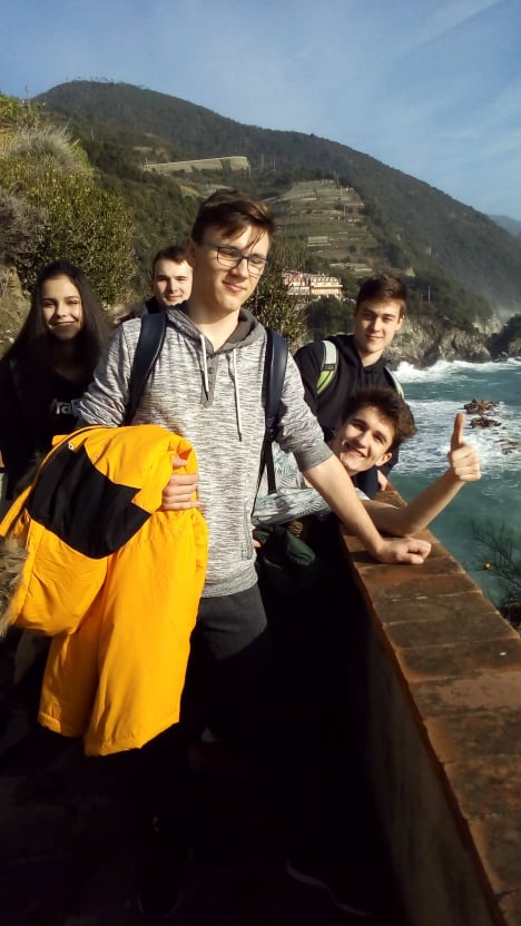 Fran Halavuk: Ulaskom RH u EU dobili smo mogućnost putovati tijekom Erasmus + projekata pa ovim putem pozivam sve koji imaju motivaciju za putovanja, druženje i učenje da to iskoriste jer je to za mene bilo neizmjerno pozitivno iskustvo. Upoznao sam puno zanimljivih prijatelja te njihovu kulturu, bilo je jako puno smijeha (i malo suza), La Spezia je prelijepi grad. Naravno, kad putuješ s tako dobrom ekipom kao što je bila naša nije ni bitno kamo se ide, jer se posvuda može nešto novo i korisno saznati. Na kraju bih zahvalio školi, profesoricama te roditeljima koji su mi omogućili ovo fenomenalno putovanje.