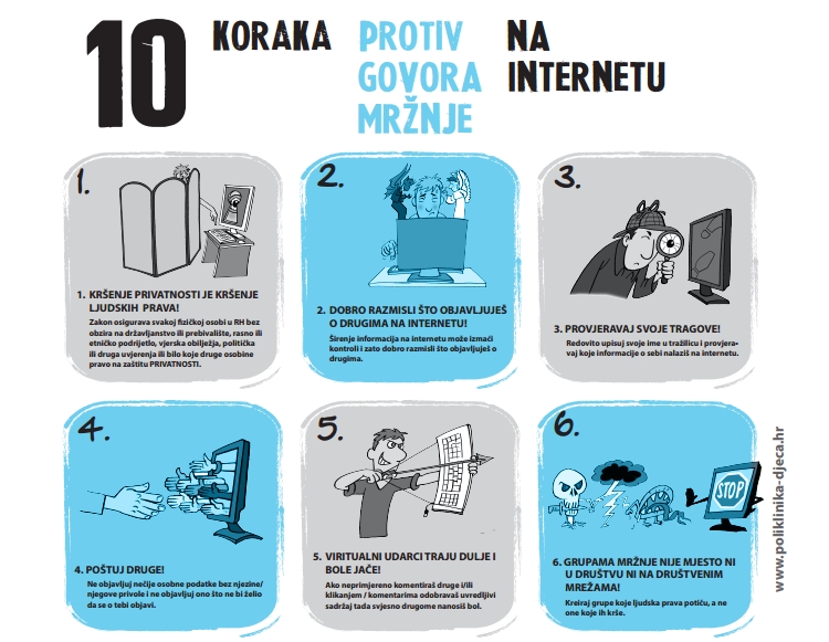 Donosimo vam plakat "10 koraka protiv govora mržnje na internetu“, koji slikom i riječju podučava pravilima koja bi svi korisnici Interneta trebali imati na umu tijekom surfanja.