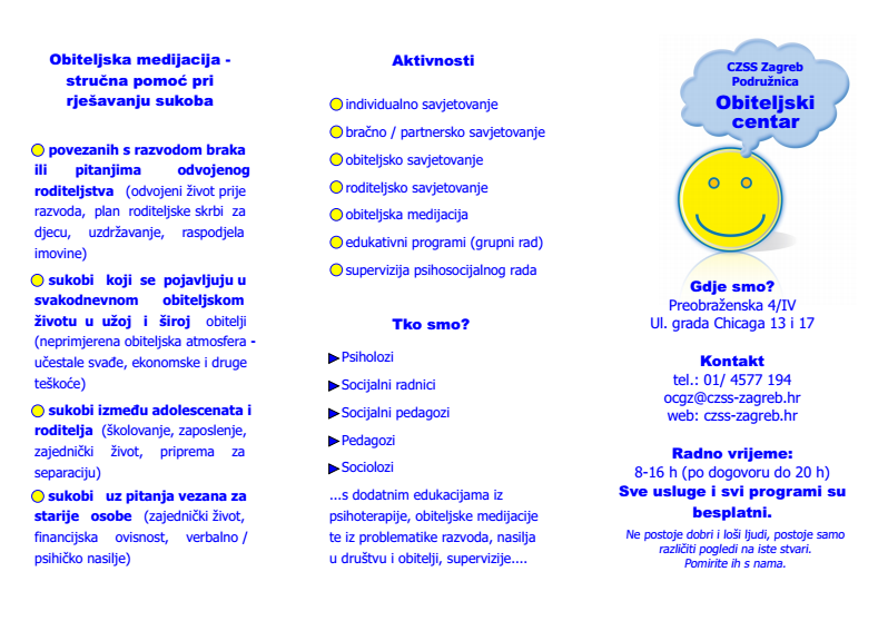 PROMOTIVNI LETAK PODRUŽNICE OBITELJSKI CENTAR