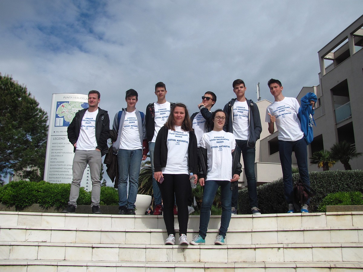 Ove godine smo po četvrti put sudjelovali na Festivalu matematike u Puli, i ove godine s dvjema ekipama. Natjecali smo se na ekipnom natjecanju "Ekipa za 5+" u kategoriji "Giga" (srednje škole). U ekipama naše škole bili su Dora Grnčarovski i Ivan Pavlović iz prvog razreda, Luka Banovec iz drugog razreda, Ema Tiljak, Filip Tiljak, Mihael Petrinjak i Martin Pelin iz trećeg razreda te Marko Starčević iz četvrtog razreda. U Giga kategoriji bile su 63 ekipe, a naši matematičari osvojili su 9. i 54. mjesto. Čestitamo našim natjecateljima i želimo im puno uspjeha na sljedećim natjecanjima!