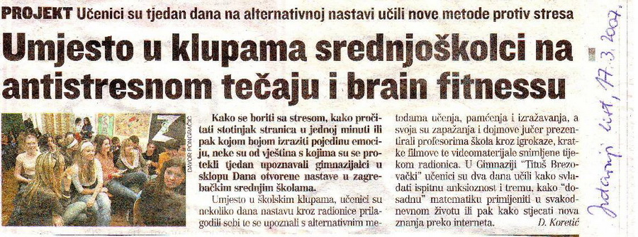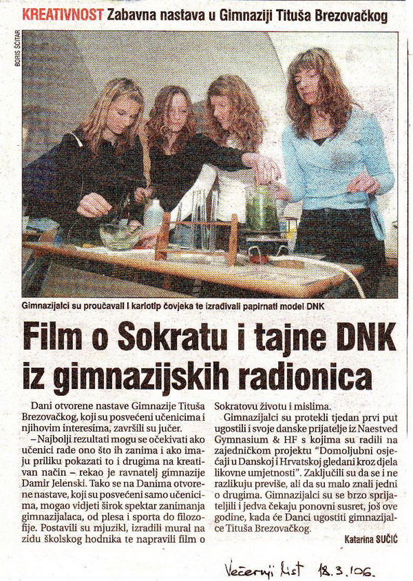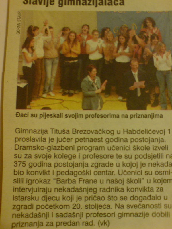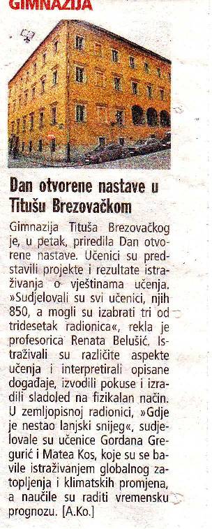 Dani otvorene nastave 2012. Gimnazije Tituša Brezovačkog