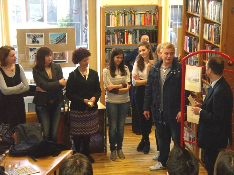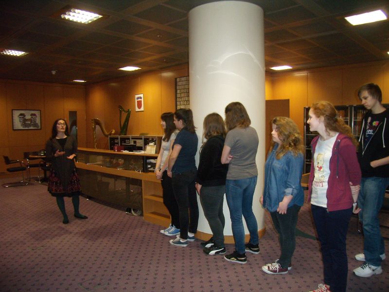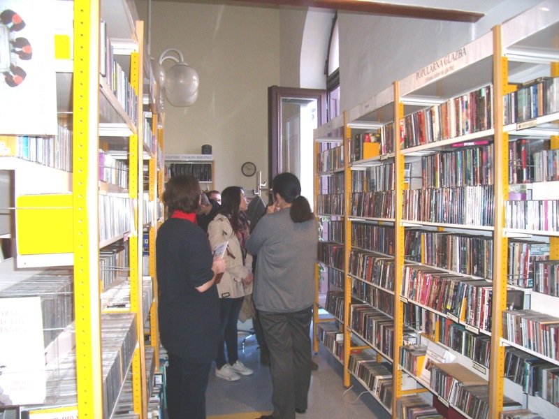 U četvrtak, 2. veljače 2012. godine grupa učenika prvih razreda naše gimnazije, uz pratnju knjižničarke, odlučila je pobliže upoznati Gradsku knjižnicu na Starčevićevu trgu. Saznali smo da u knjižnici, osim knjiga, možemo posuditi i omiljeni film na DVD-u ili CD klasične glazbe. Također, vidjeli smo spremište knjiga s pokretnim policama na kojima se nalazi više od 130 000 svezaka. Bili smo u Čitaonici novina i časopisa na 1. katu te u Čitaonici priručnika i zbirki koja sadrži knjige iz različitih područja. Učinilo nam se da prevladavaju priručnici iz povijesti i umjetnosti. Šećer na kraju bio je posjet Glazbenom odjelu. Tamo su izloženi CD-i klasične glazbe, ali i CD-i s filmskom glazbom, narodnom glazbom Afrike, Amerike...