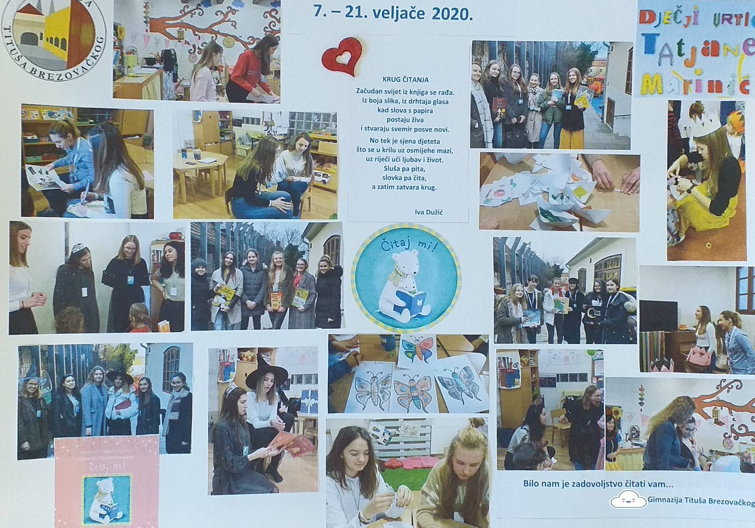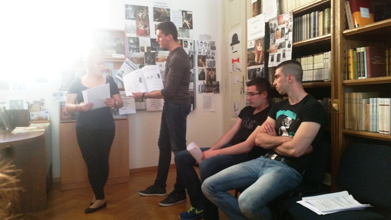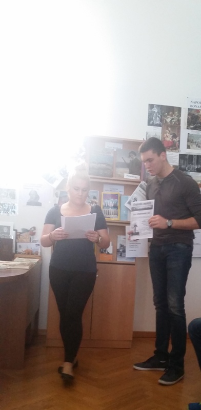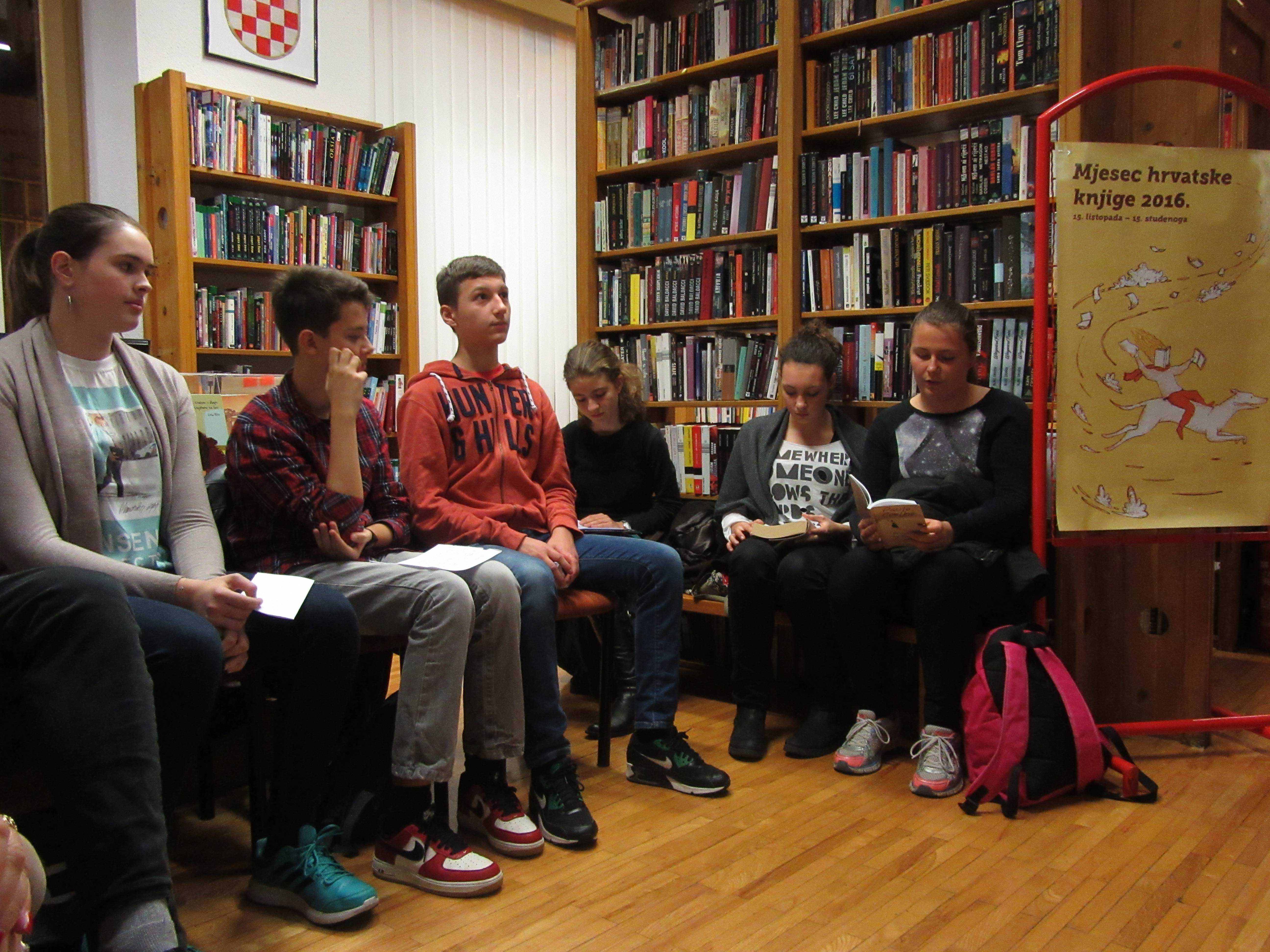U Knjižnici Marije Jurić Zagorke 23. listopada naši učenici i profesori naglas su čitali tekstove omiljenih autora. Malo društvo čitatelja činili su: Lucija Čutura 1.a, Selma Imamagić 1.a, Nina Lovrić 1.c, Anisa Zahirović 1.c, Emanuel Tomljenović 2.a, Iva Živković 2.b, Erika Cindrić 2.c, Mia Maesano Krapinec 2.c, Lovro Preprotnik 3.c, Jelena Krpan 3.c, Luka Šatara 3.d, Sandra Vukić, prof. , Branka Drageljević, prof. i Jadranka Jurić, prof. Čitali su tekstove Pennaca, Hornbyja, Kiševića, Kishona, Gavrana, Zafona, Žmegača, E. A. Poea, Hermana i Riecka, Pavličića, Doctorowa, Conollyja… Na kraju, poslušali smo i pogledali sjajnu interpretaciju Moliereova Harpagona u izvedbi Luke Šatare. Čitanjem i glumom odali smo zahvalnost knjizi.