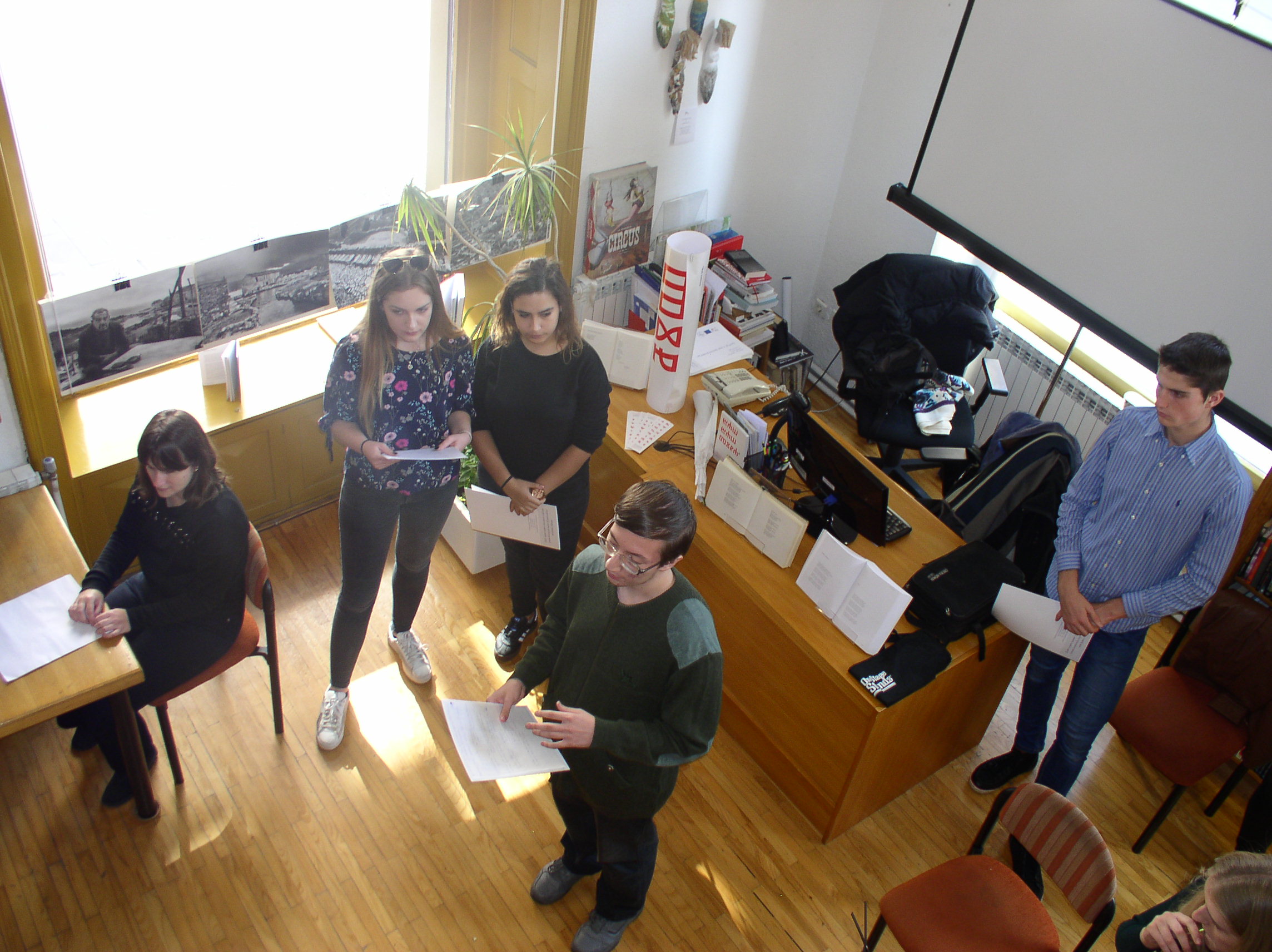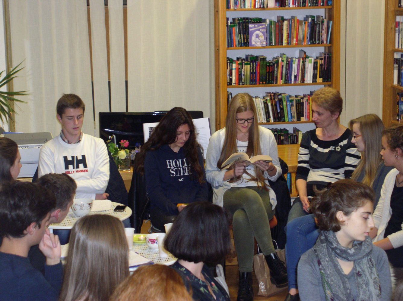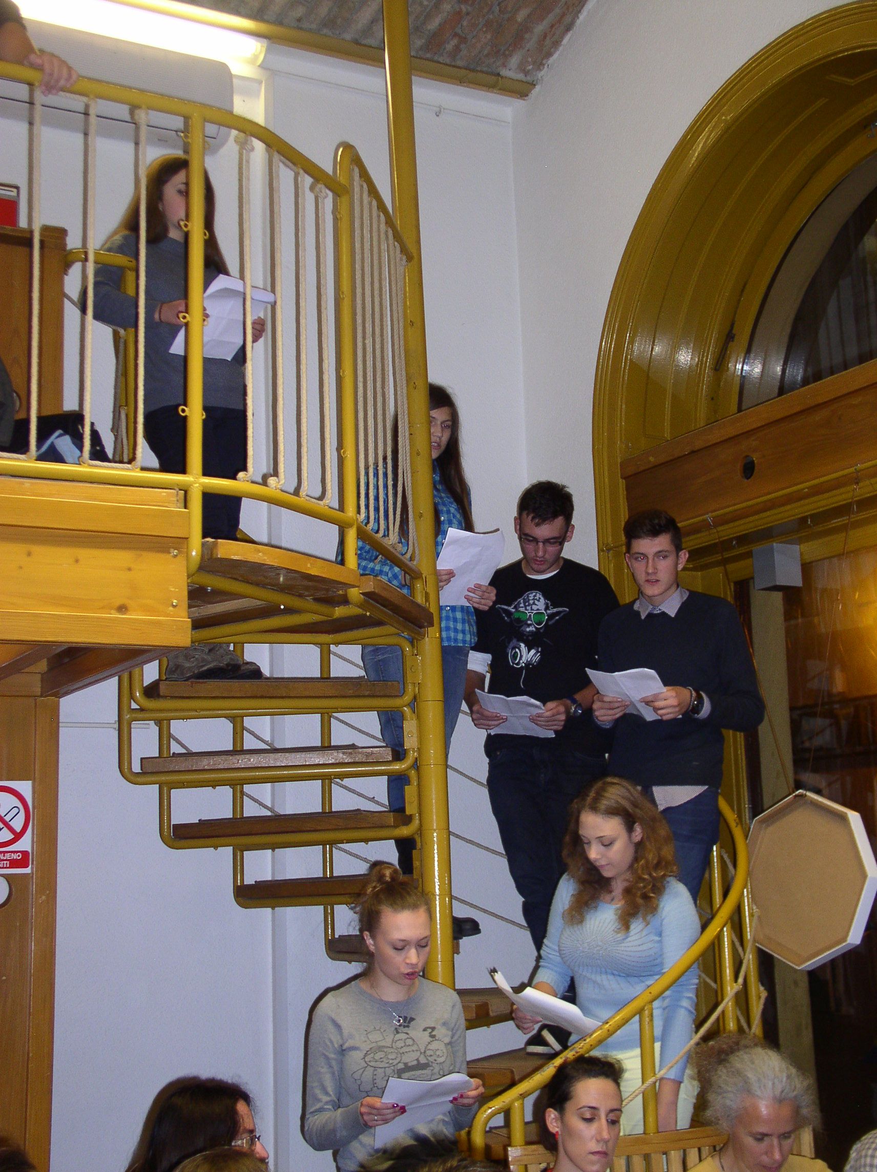 U Knjižnici Marije Jurić Zagorke 23. listopada naši učenici i profesori naglas su čitali tekstove omiljenih autora. Malo društvo čitatelja činili su: Lucija Čutura 1.a, Selma Imamagić 1.a, Nina Lovrić 1.c, Anisa Zahirović 1.c, Emanuel Tomljenović 2.a, Iva Živković 2.b, Erika Cindrić 2.c, Mia Maesano Krapinec 2.c, Lovro Preprotnik 3.c, Jelena Krpan 3.c, Luka Šatara 3.d, Sandra Vukić, prof. , Branka Drageljević, prof. i Jadranka Jurić, prof. Čitali su tekstove Pennaca, Hornbyja, Kiševića, Kishona, Gavrana, Zafona, Žmegača, E. A. Poea, Hermana i Riecka, Pavličića, Doctorowa, Conollyja… Na kraju, poslušali smo i pogledali sjajnu interpretaciju Moliereova Harpagona u izvedbi Luke Šatare. Čitanjem i glumom odali smo zahvalnost knjizi.