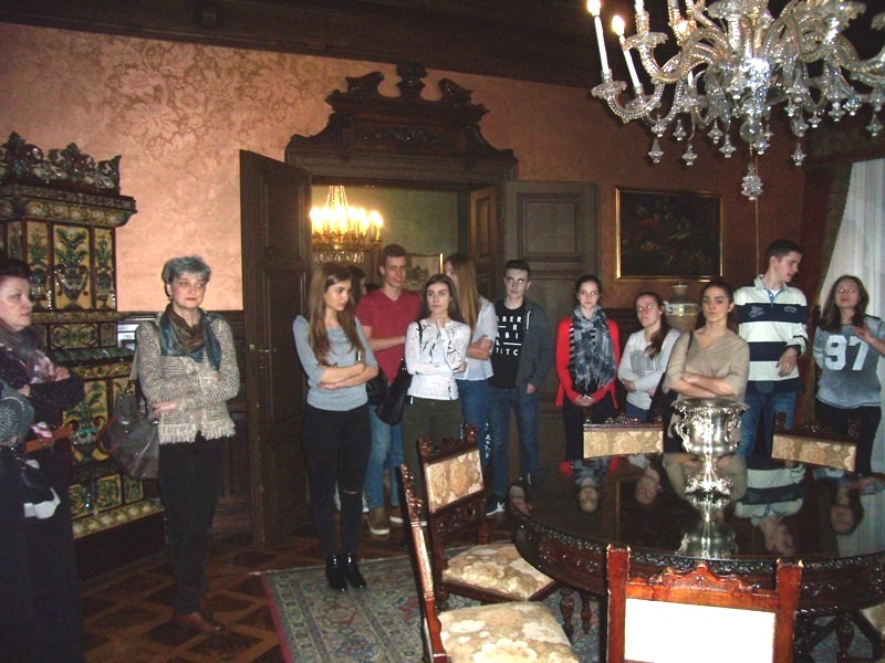 Uslijedio je obilazak vile iznutra uz simpatičnu kustosicu Vesnu Vrabec koja se trudila učiniti naš posjet što zanimljivijim. Vidjeli smo nekoliko porteta bračnog para, mnogo zanimljivog i vrijednog namještaja koji je uglavnom dar Krležine „tete Pepe“. Imali smo priliku pronaći Krležu na slici s prijateljima iz djetinjstva, no ne moram napominjati da to nikome nije pošlo za rukom. Divili smo se njihovoj zbirci knjiga koja premašuje broj od 4 200 primjeraka itekako vrijednih pažnje.