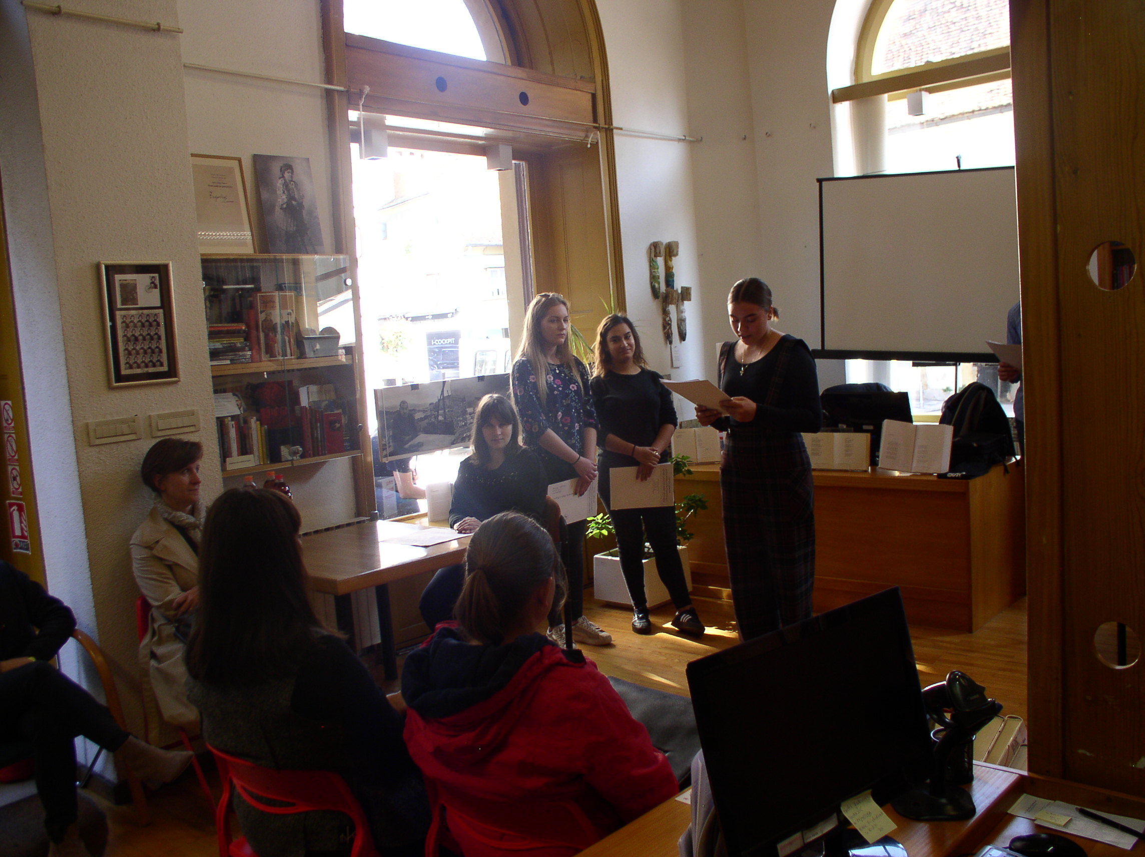 U povodu skoroga obilježavanja Dana sjećanja na žrtve holokausta (27. siječnja) učenici 3.c razreda, u pratnji profesorice Sandre Vukić i knjižničarke Jadranke Jurić, pozvani su u Knjižnicu i čitaonicu Bogdana Ogrizovića na predstavljanje grafičke novele "Leina priča".