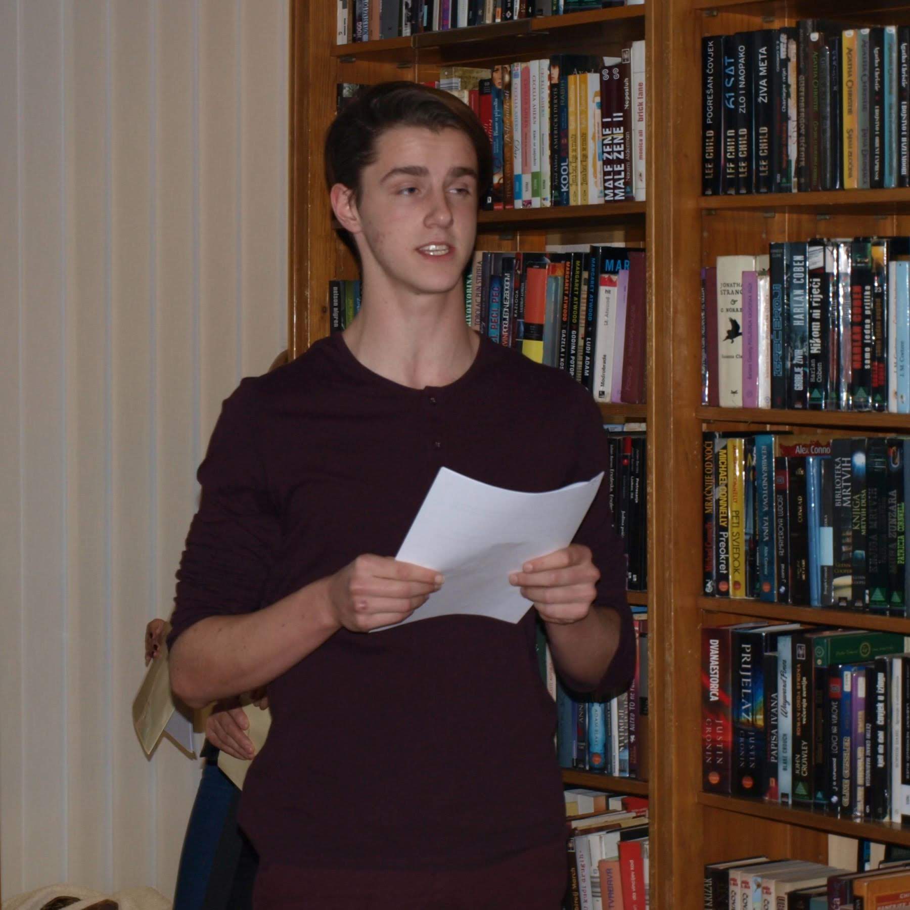 Naši učenici Jelena Krpan, 3.c i Pavle Menalo 1.a sudjelovali su u radionici engleskoga jezika na ovogodišnjem Interliberu. Radionica Cambridge English First - Spremni za uspjeh u stvarnom svijetu organizirana je u suradnji s British Councilom, a voditelj je bio Stephen Hindlaugh. Cambridge English First ili First Certificate in English (FCE) je kvalifikacija iz engleskoga jezika na razini B2 Zajedničkoga europskog referentrnog okvira za jezike. S ovom kvalifikacijom dokazuje se znanje engleskoga jezika za potrebe rada ili studiranja u inozemstvu. Voditelj radionice s polaznicima - gimnazijalcima prolazio je kroz dijelove ispita i uspoređivao ispit FCE s ispitom hrvatske državne mature.