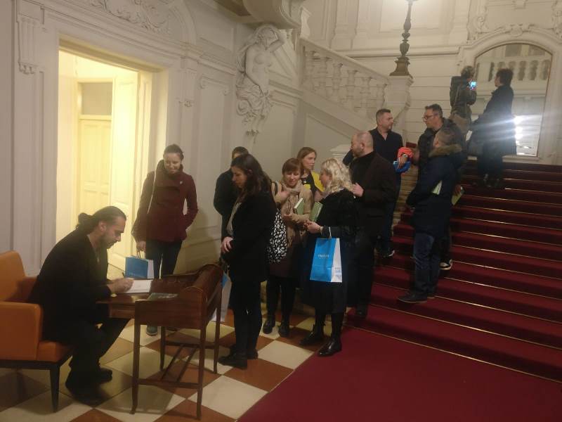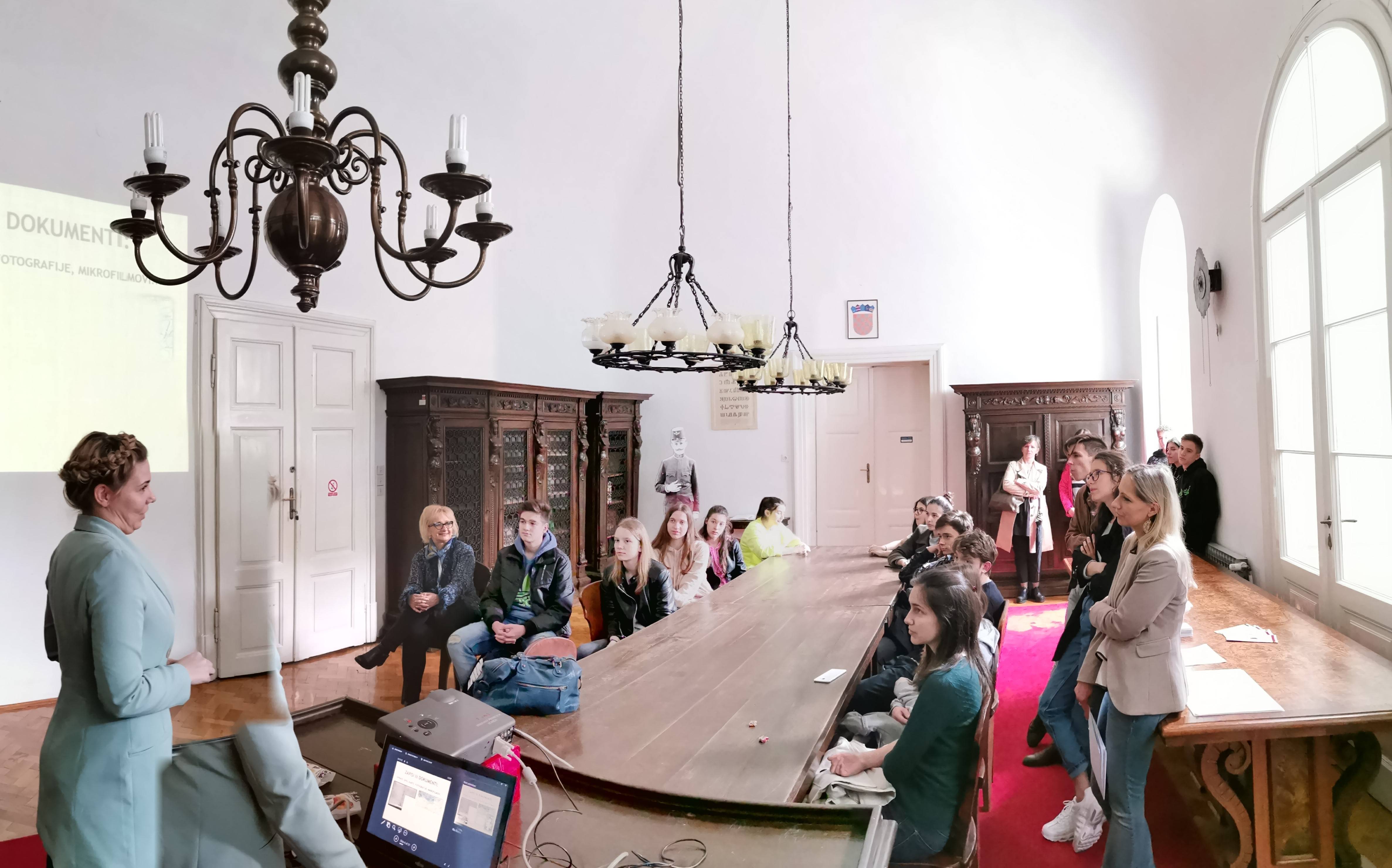 U predvorju dočekao nas je gospodin Ivo Tokić i učenicima ukratko predstavio ovu ustanovu, hram hrvatske knjige.