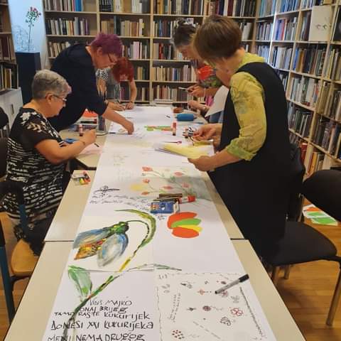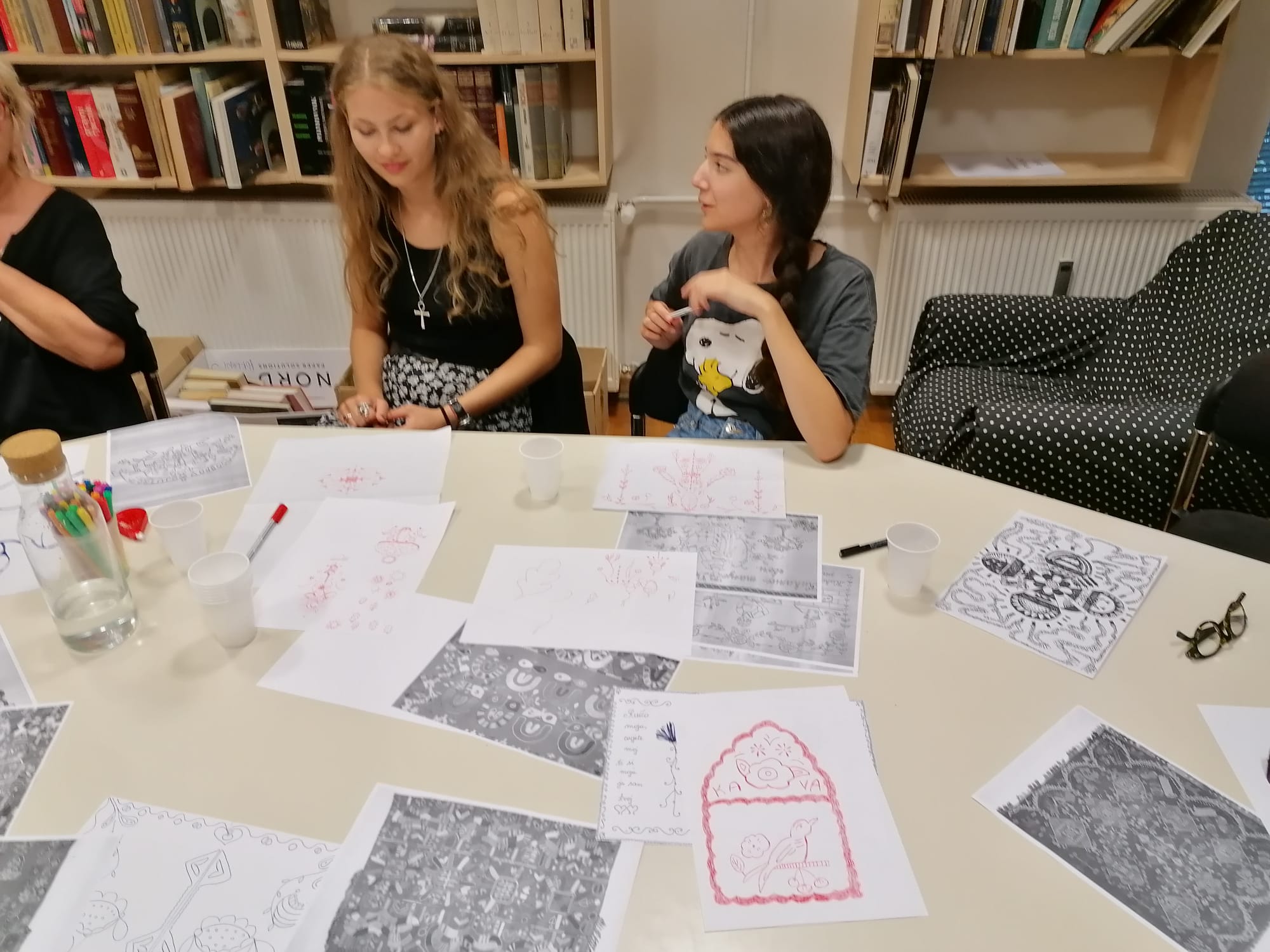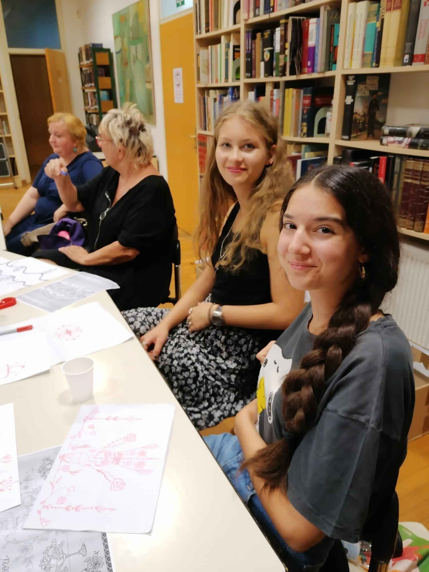 U prostoru Knjižnice Vladimira Nazora održale su se već dvije likovne i grafičko-dizajnerske radionice na kojima su aktivno sudjelovale i naše učenice Luthien Lorelei Krstevski i Jaka Šišak Labaš iz 4.a te profesorice Vlasta Sokolić i Jadranka Jurić.