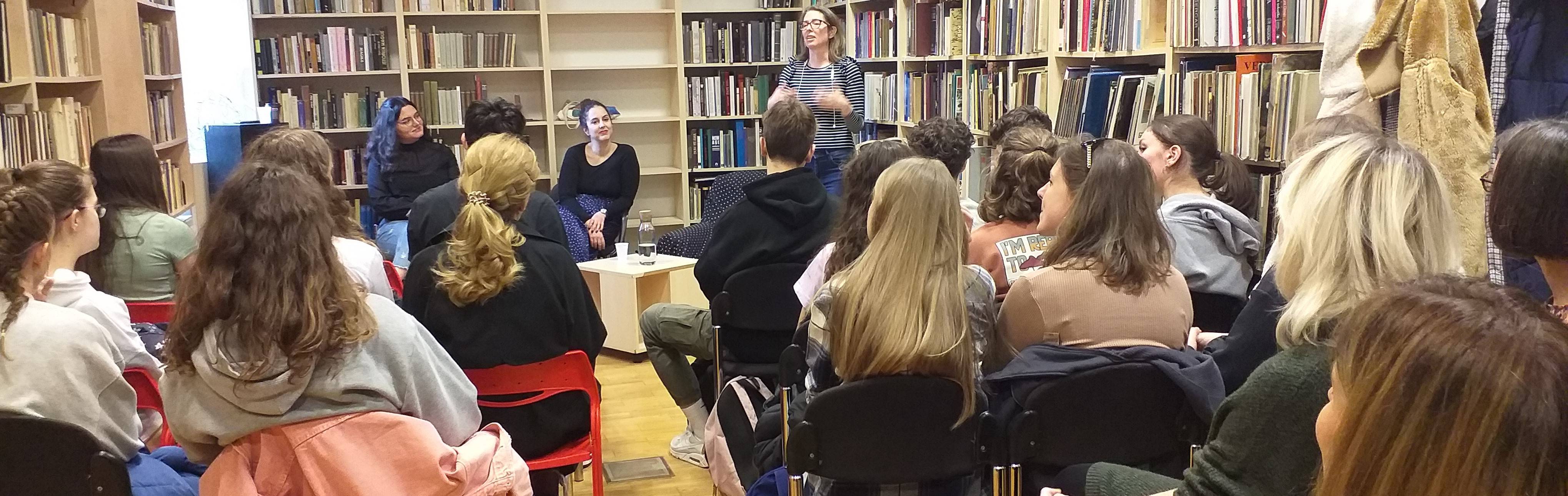 U srijedu, 19. travnja učenici Gimnazije Tituša Brezovačkog i I. gimnazije bili su u Knjižnici Vladimira Nazora na predstavljanju udruge Kako si? Pridružile su im se profesorice Susanne Homan, Lucija Conar, Marija Slobodić i Jadranka Jurić.