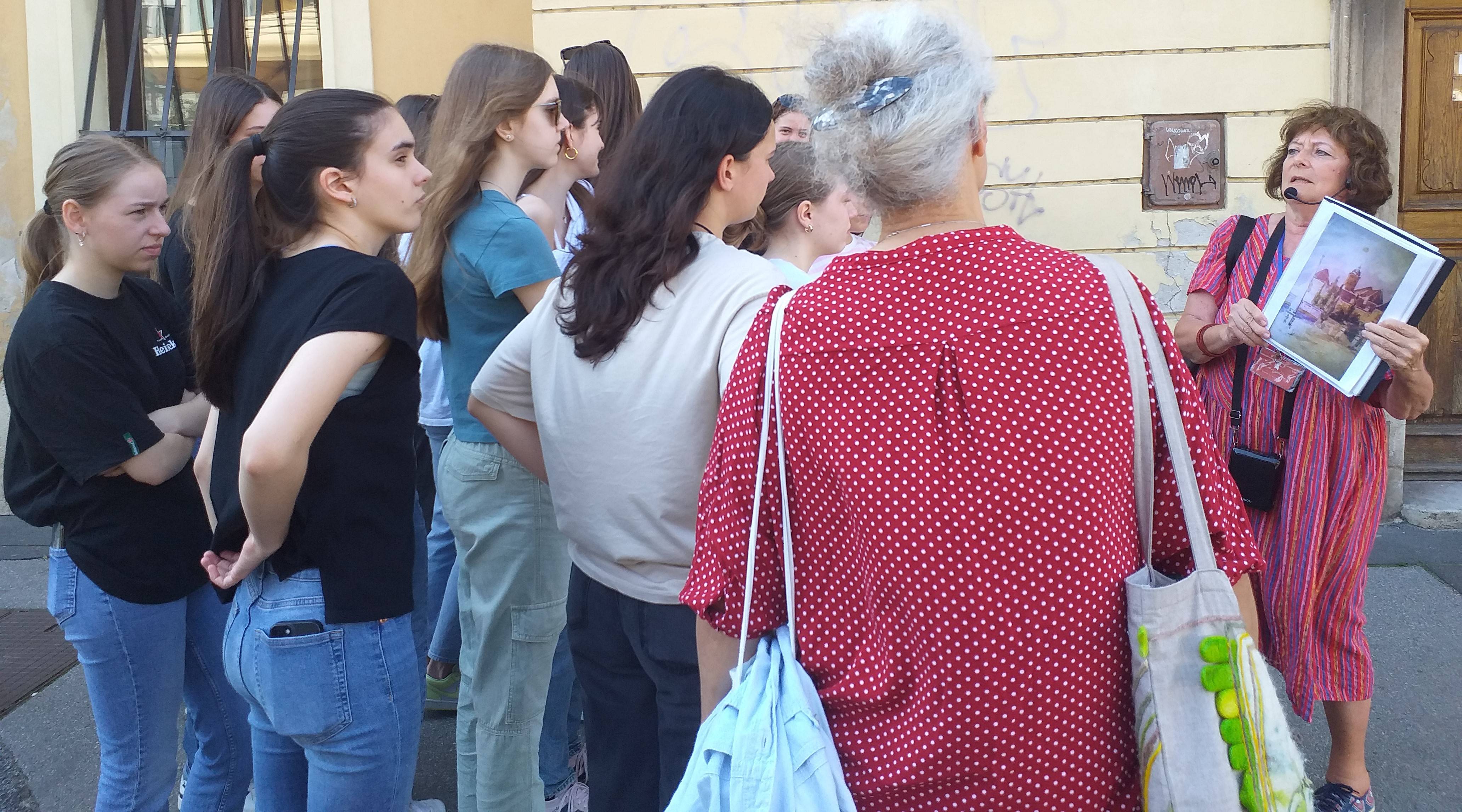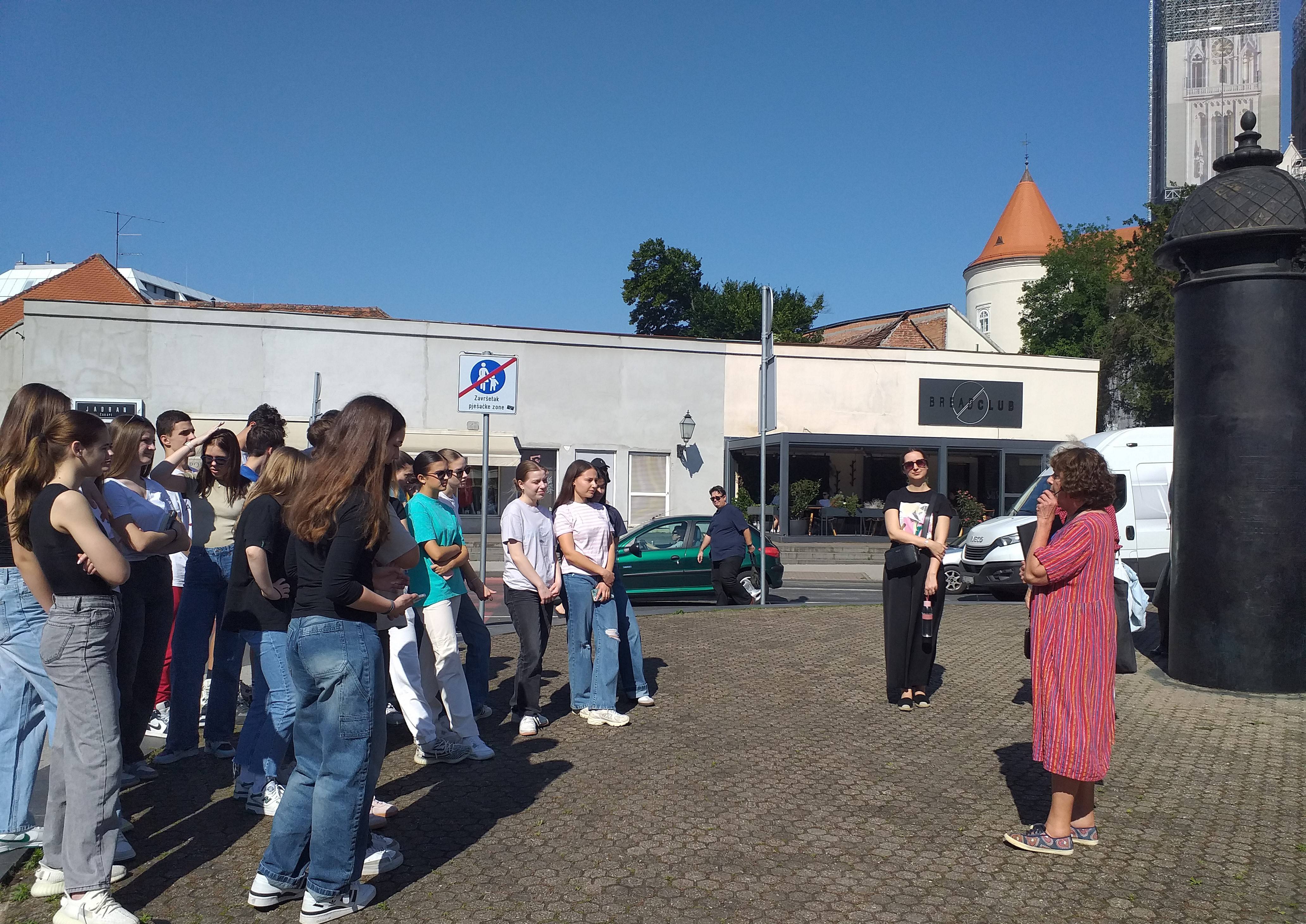 Učenici 1.a razreda, u pratnji profesorica Andree Igaly, Selene Pleško Brkić i Jadranke Jurić, sudjelovali su u razgledu grada pod nazivom Vazda moj Zagreb - putevima Augusta Šenoe.