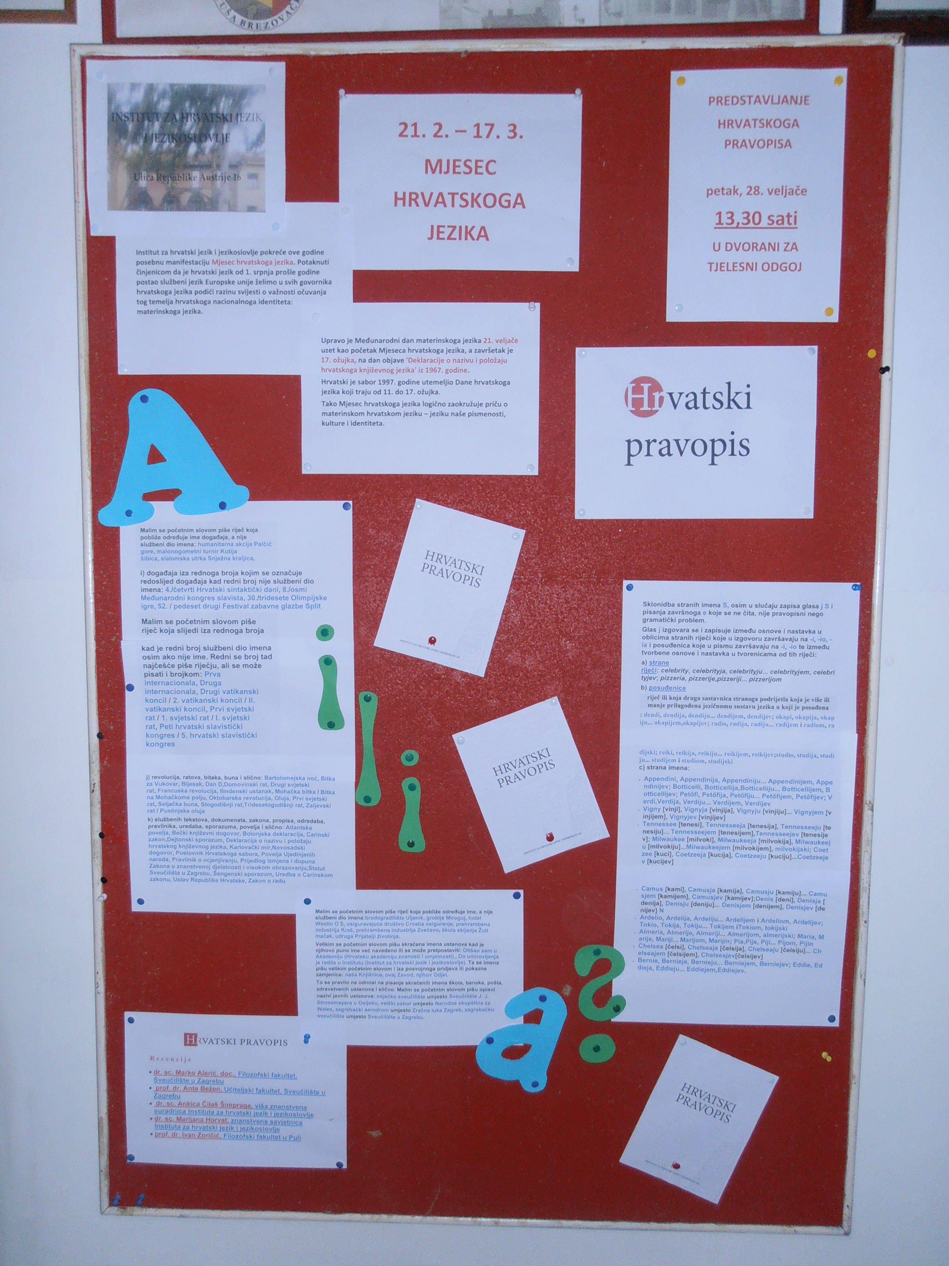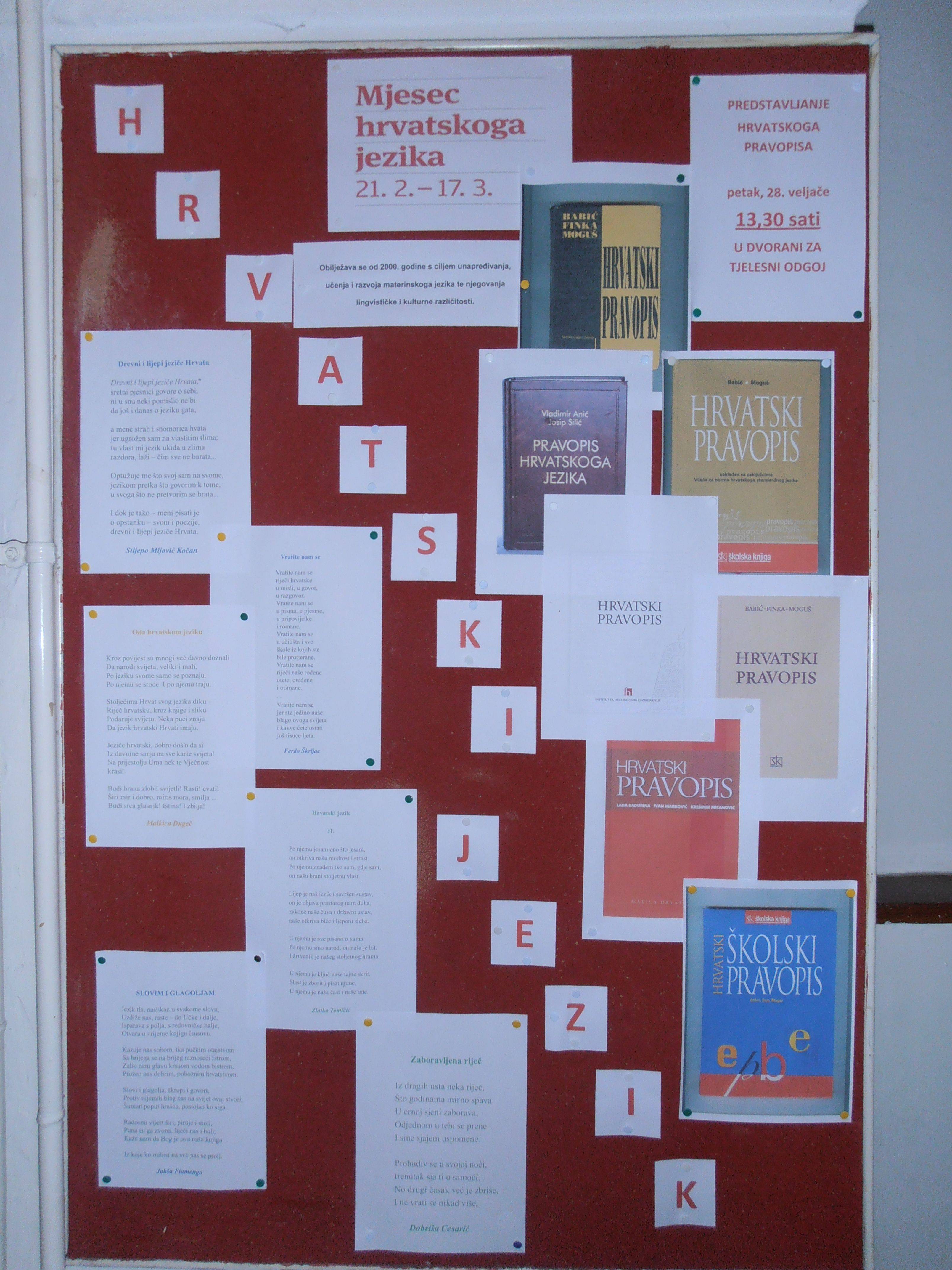 Povodom Međunarodnoga mjeseca materinskoga jezika (21. veljče) i Mjeseca hrvatskoga jezika (21. veljače - 17. ožujka) u Gimnaziju smo pozvali znanstvenike Instituta za hrvatski jezik i jezikoslovlje koji su našim profesorima i učenicima predstavili novi Hrvatski pravopis. Naši gosti bili su Željko Jozić, ravnatelj Instituta te znanstvenice Ermina Ramadanović i Goranka Blagus Bartolec.