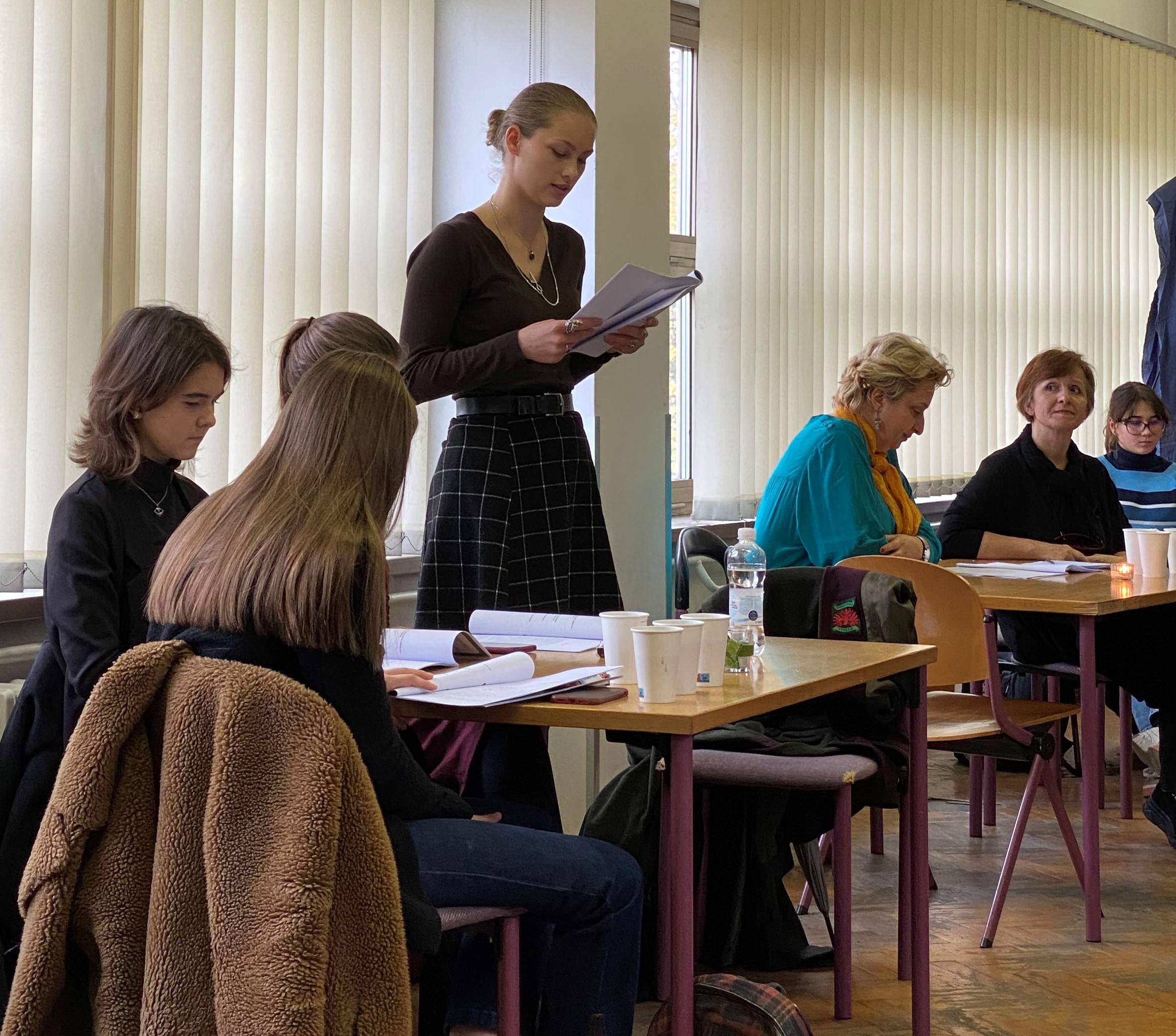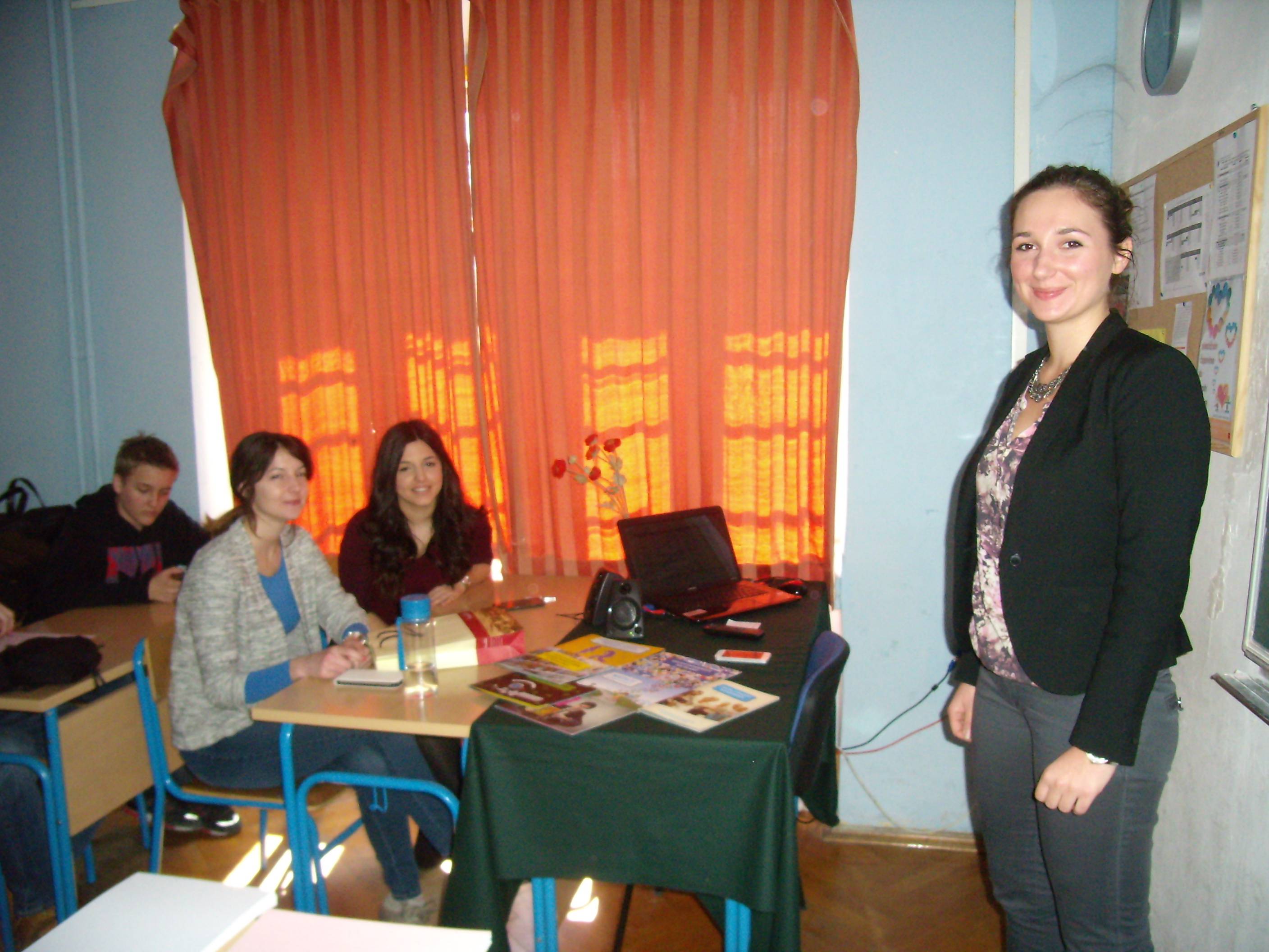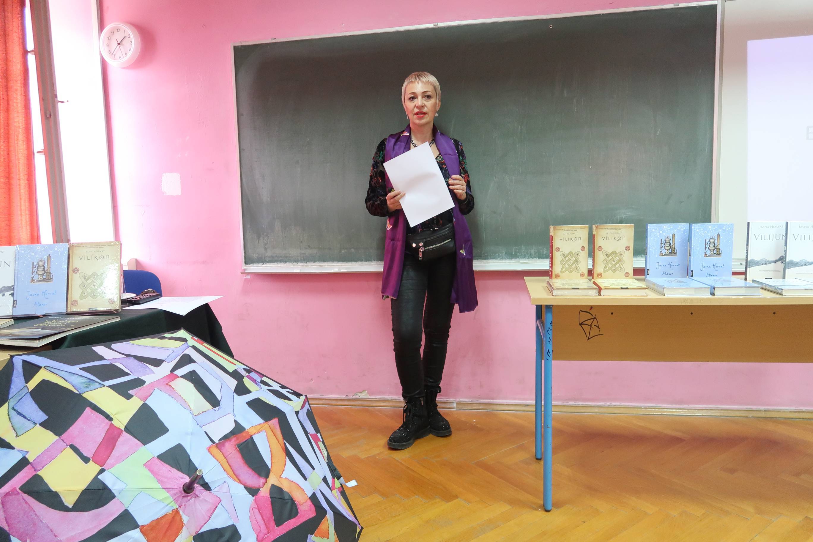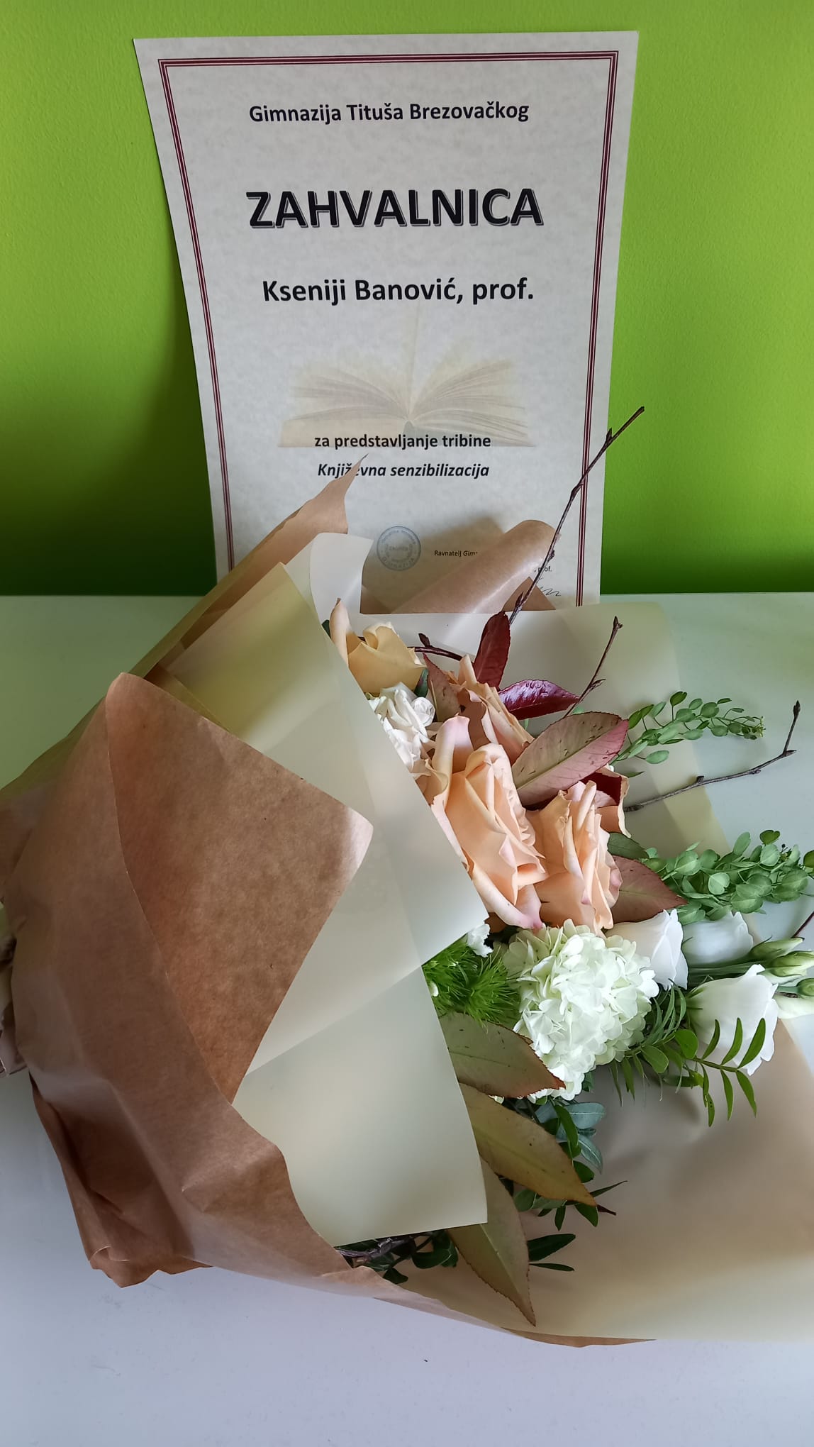 Povodom Mjeseca hrvatske knjige Ksenija Banović, profesorica hrvatskoga jezika i književnosti, vrsna prevoditeljica i magistra bibliotekarstva, održala je učenicima i profesorima naše gimnazije predavanje Umijeće i umjetnost prevođenja.