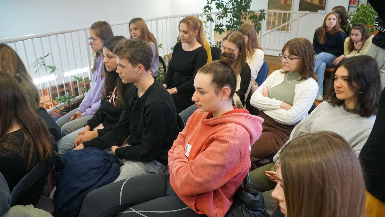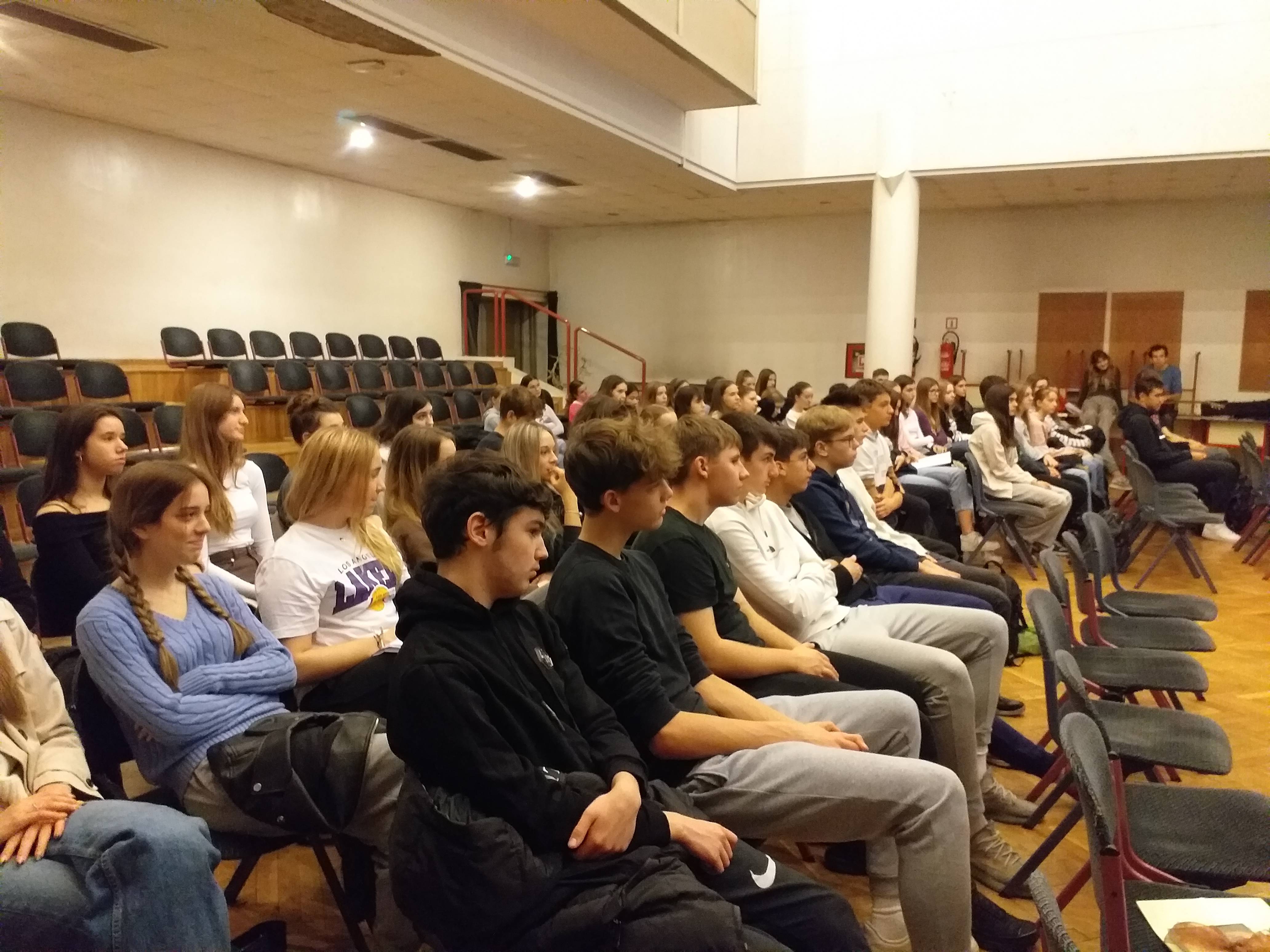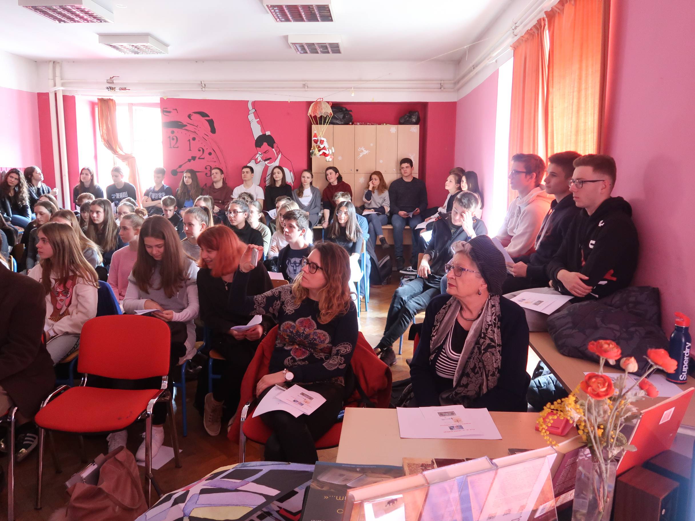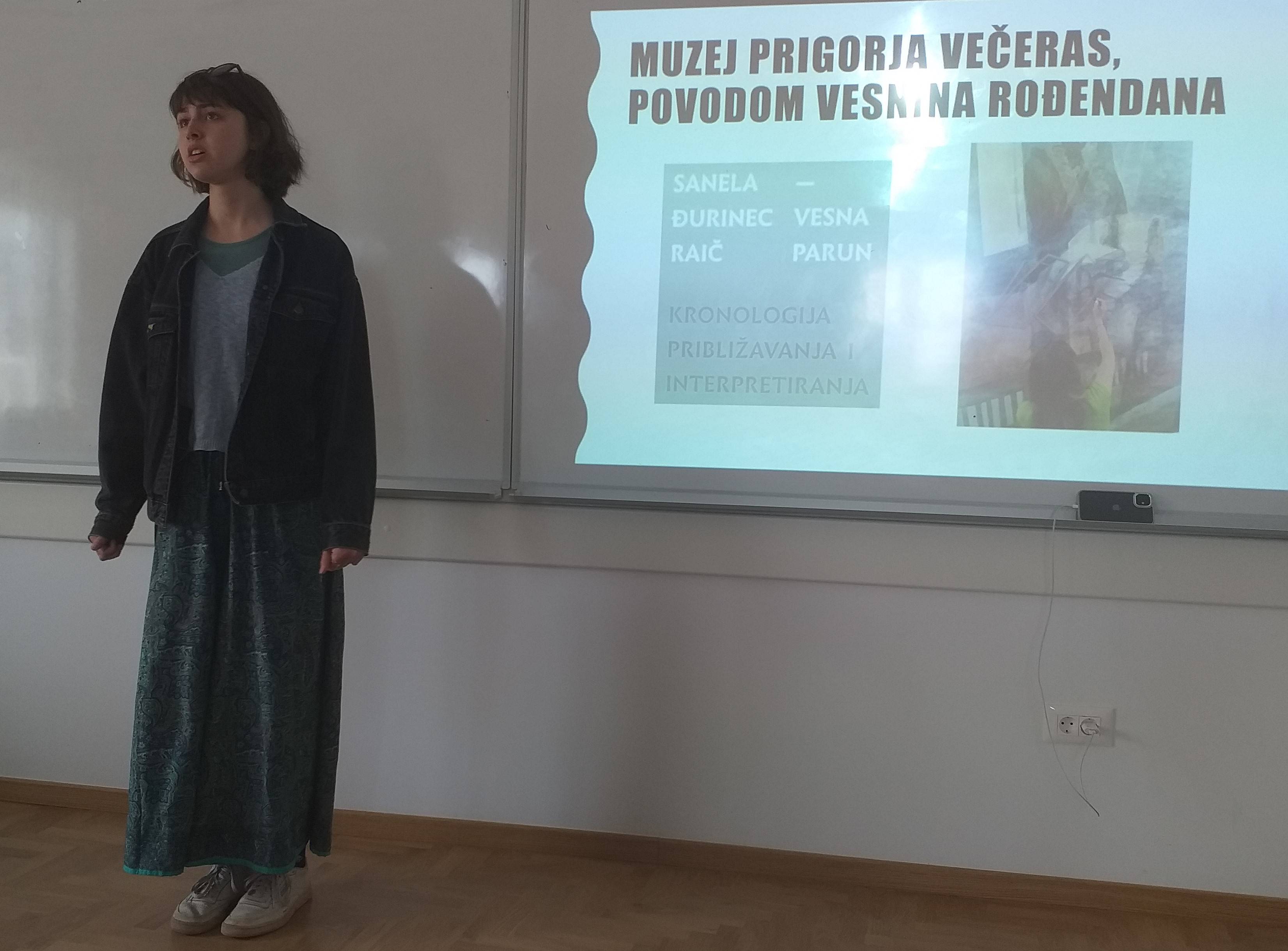 Izuzetno vrijedno i dragocjeno predavanje lirski su obogatile učenice Maria Mihaljević, 4.a i Maja Mukavec, 4.d recitiranjem poezije Vesne Parun.