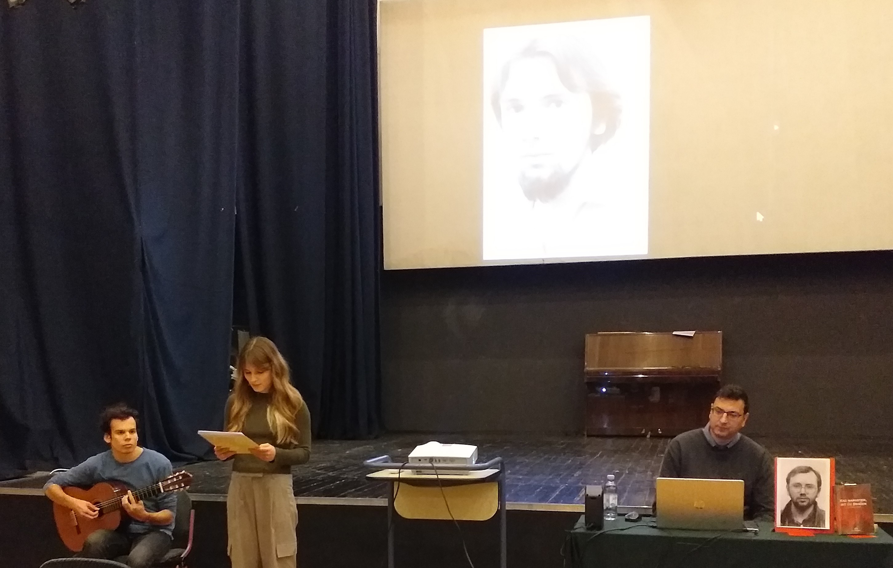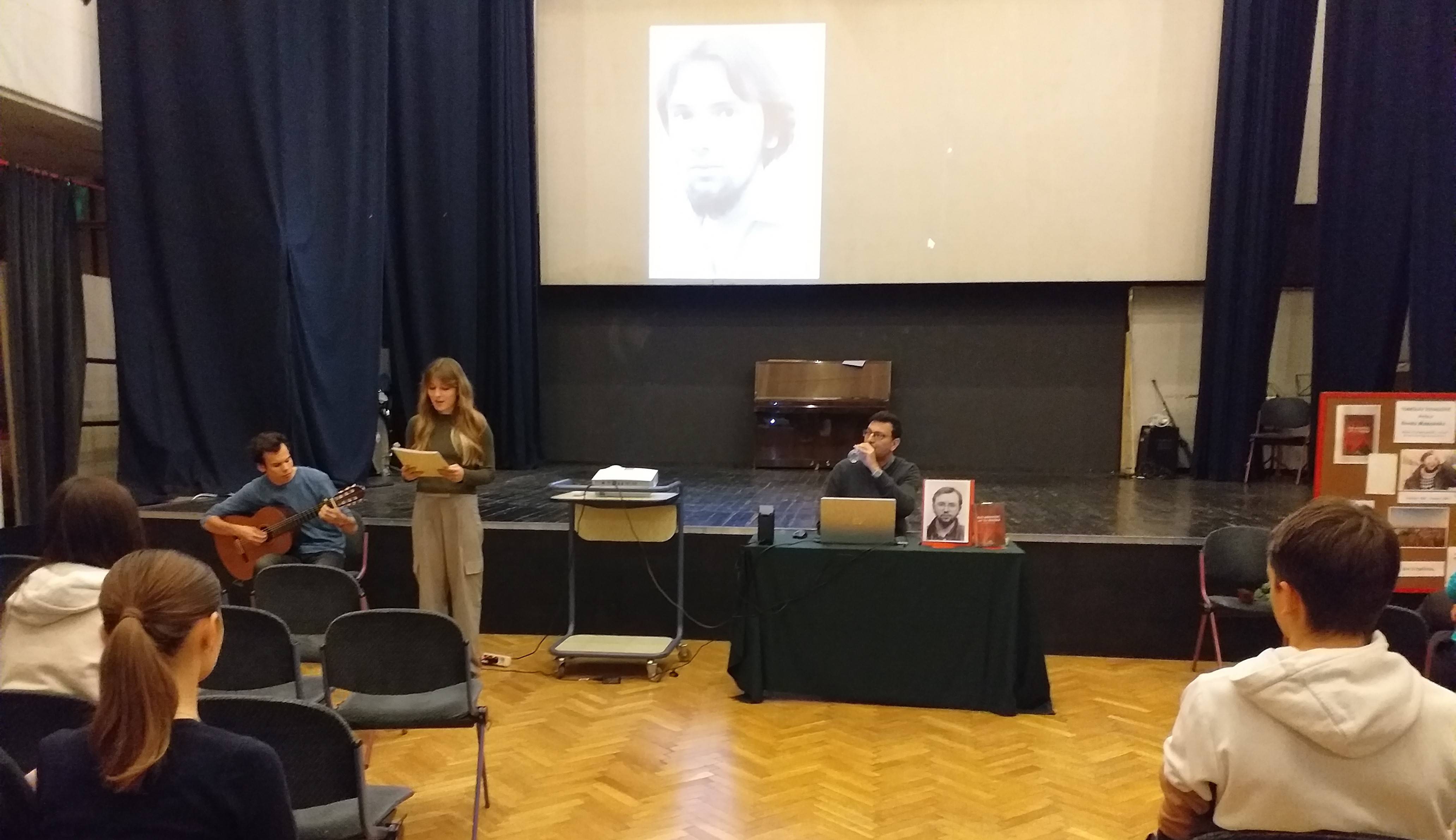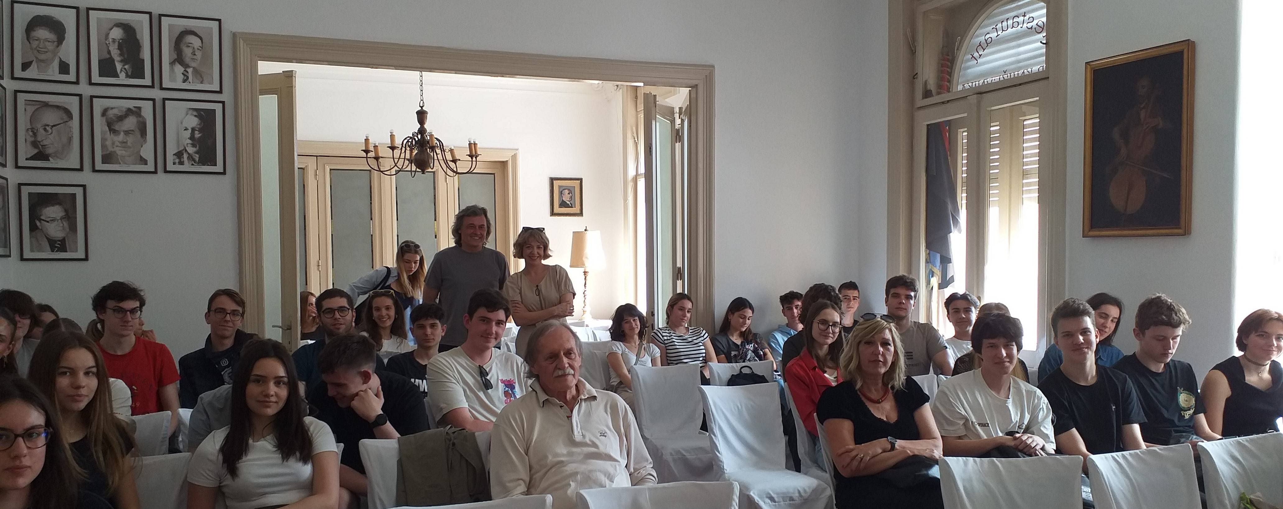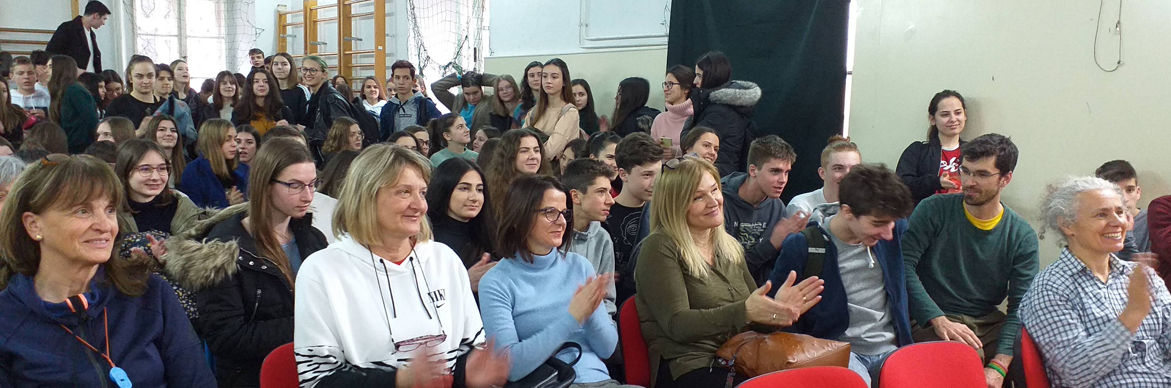 Profesor Nikola Kuzmičić kazivao je svoje stihove kolektivu I. gimnazije. Darovana poezija bila je ujedno znak zahvalnosti našim domaćinima.