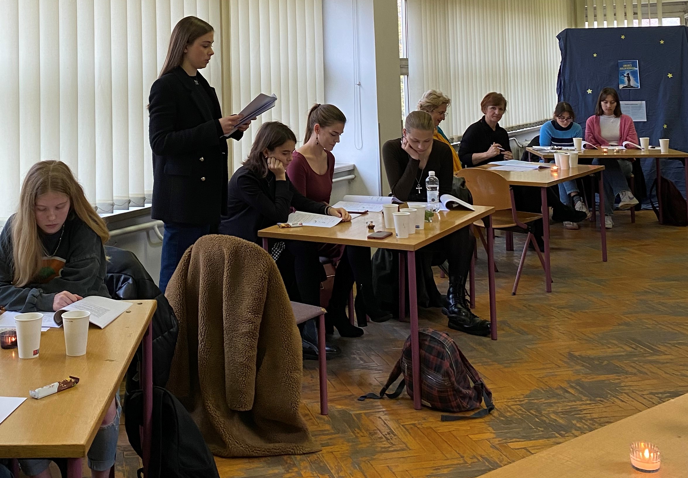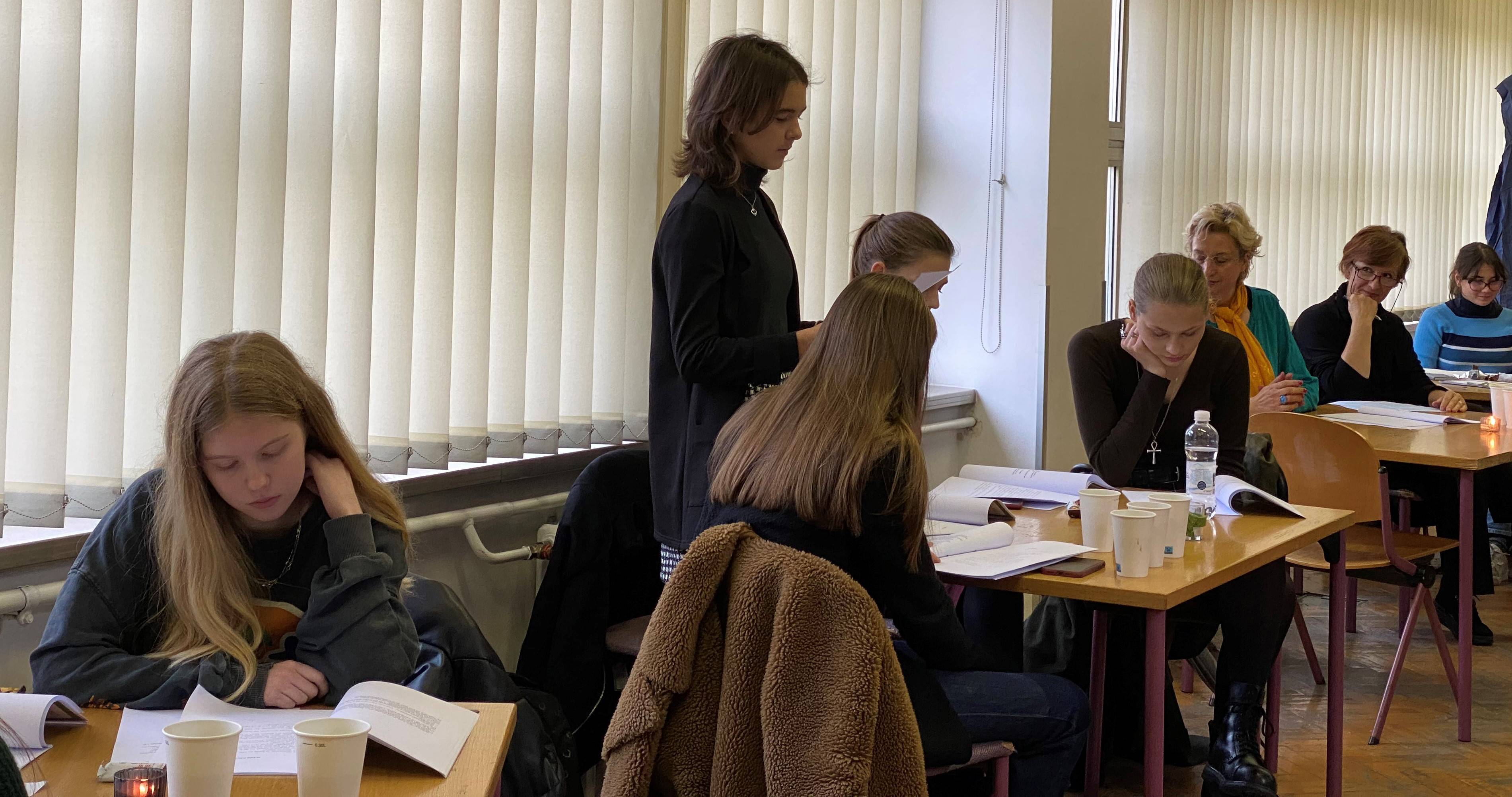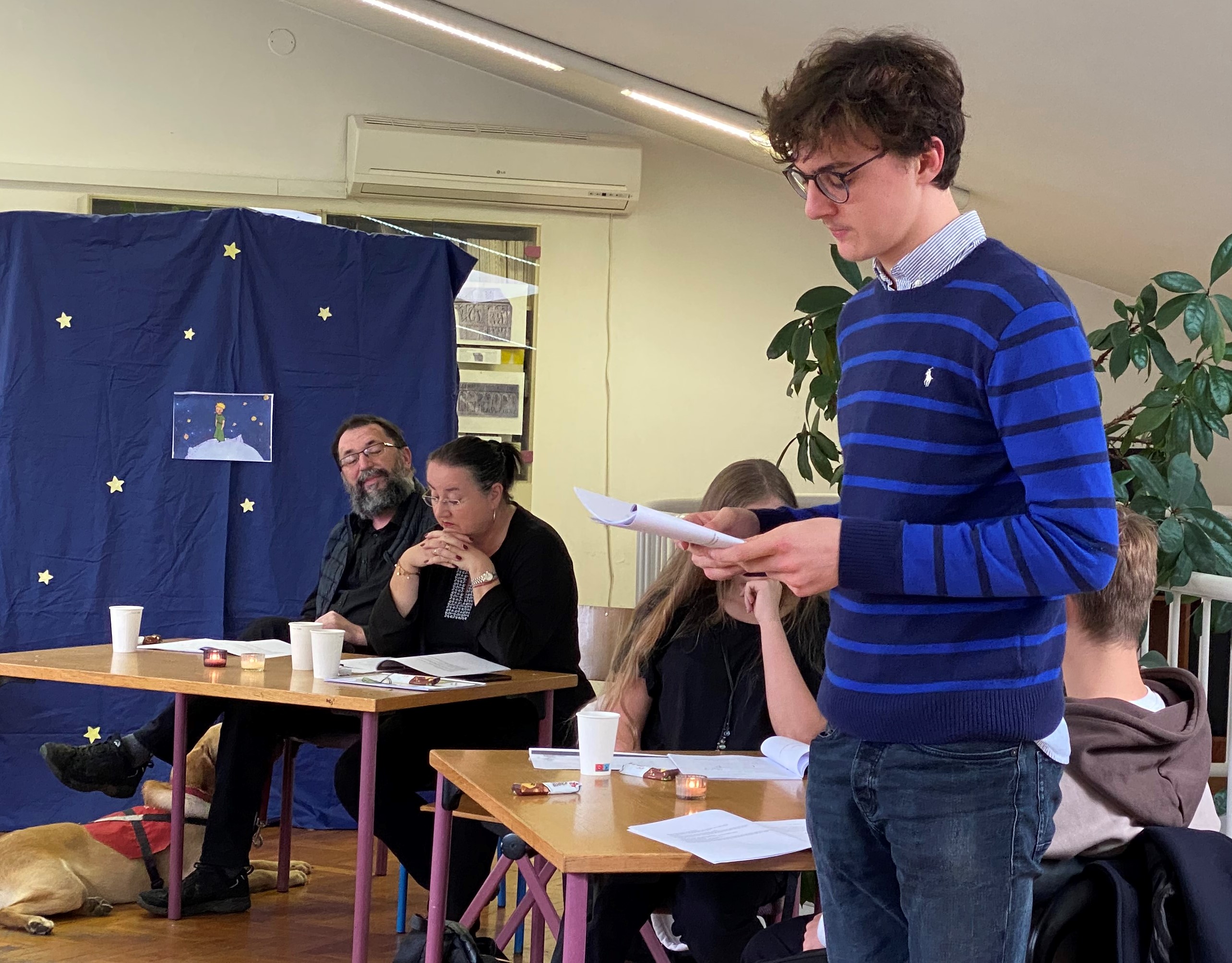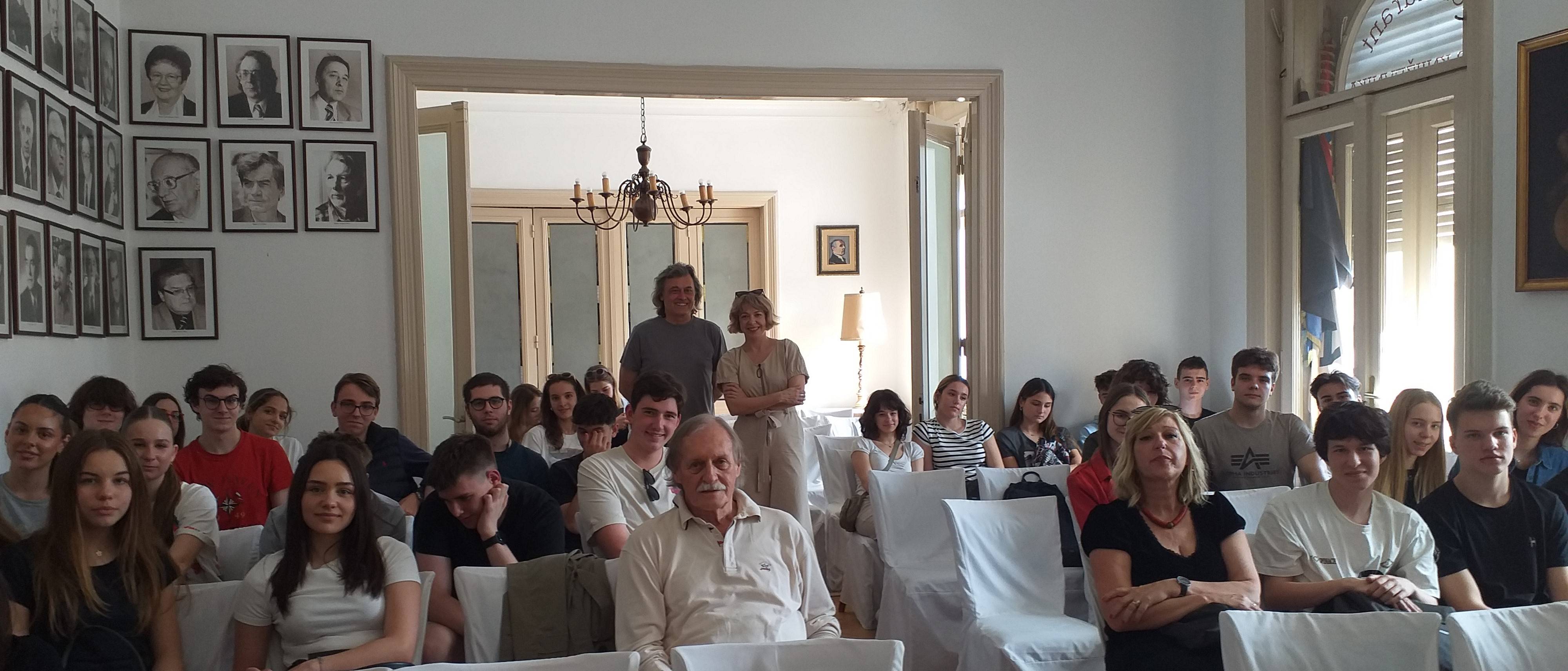 Profesor Nikola Kuzmičić kazivao je svoje stihove kolektivu I. gimnazije. Darovana poezija bila je ujedno znak zahvalnosti našim domaćinima.