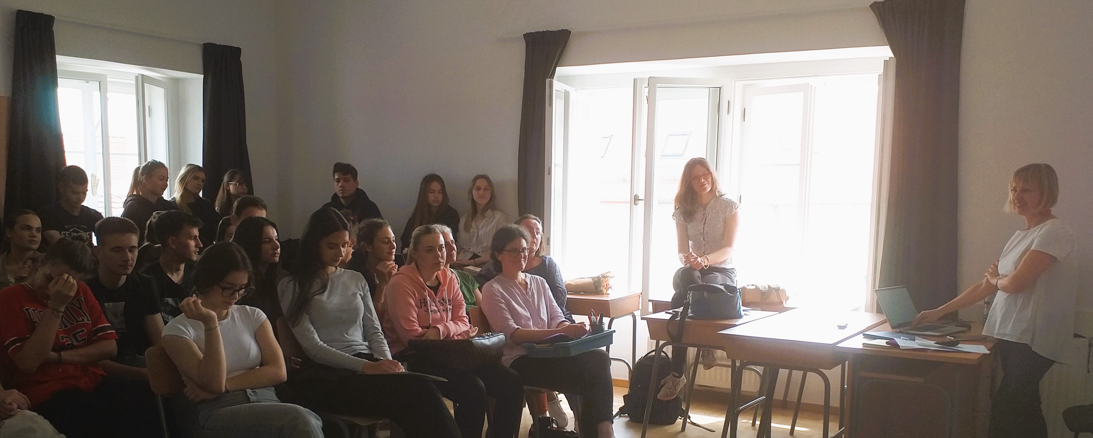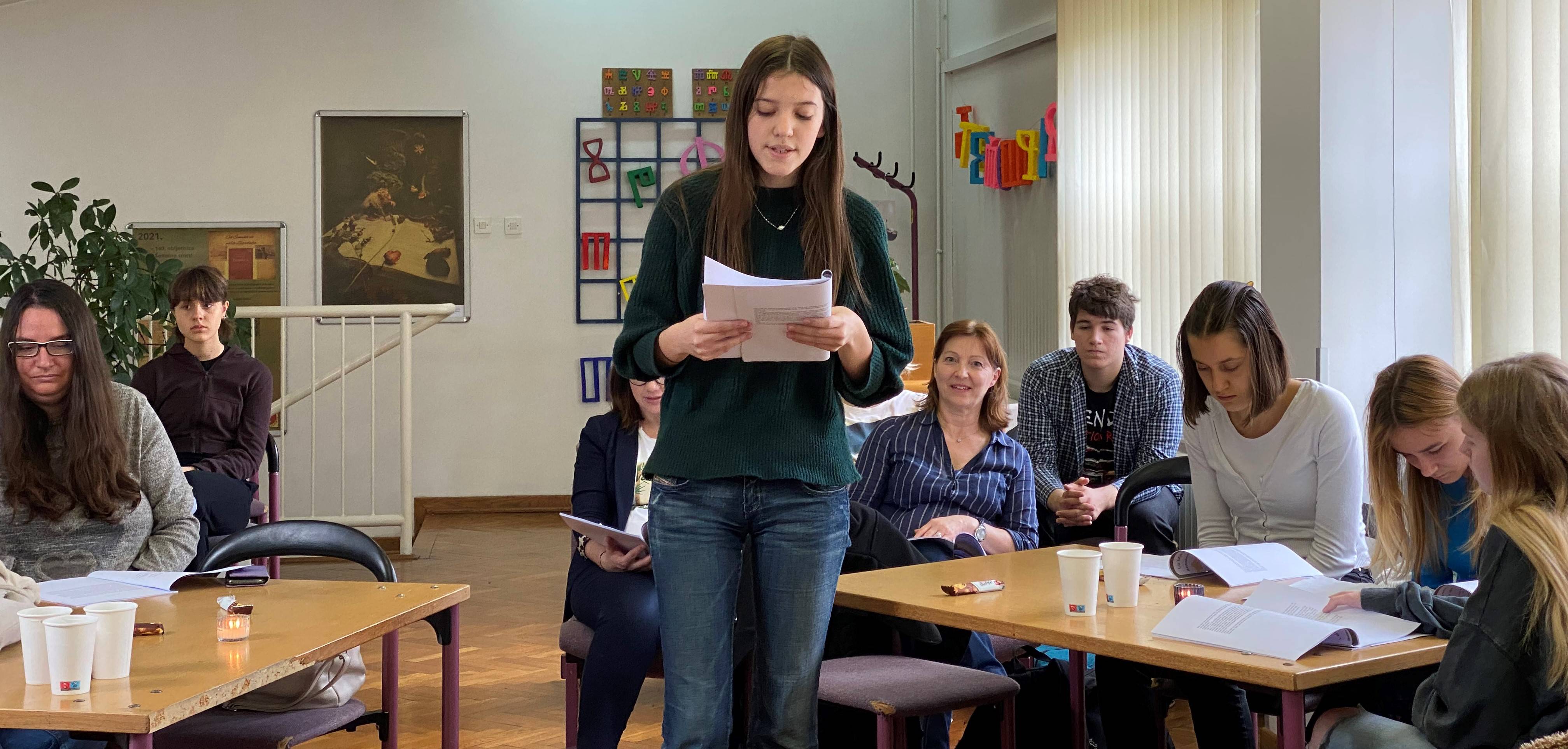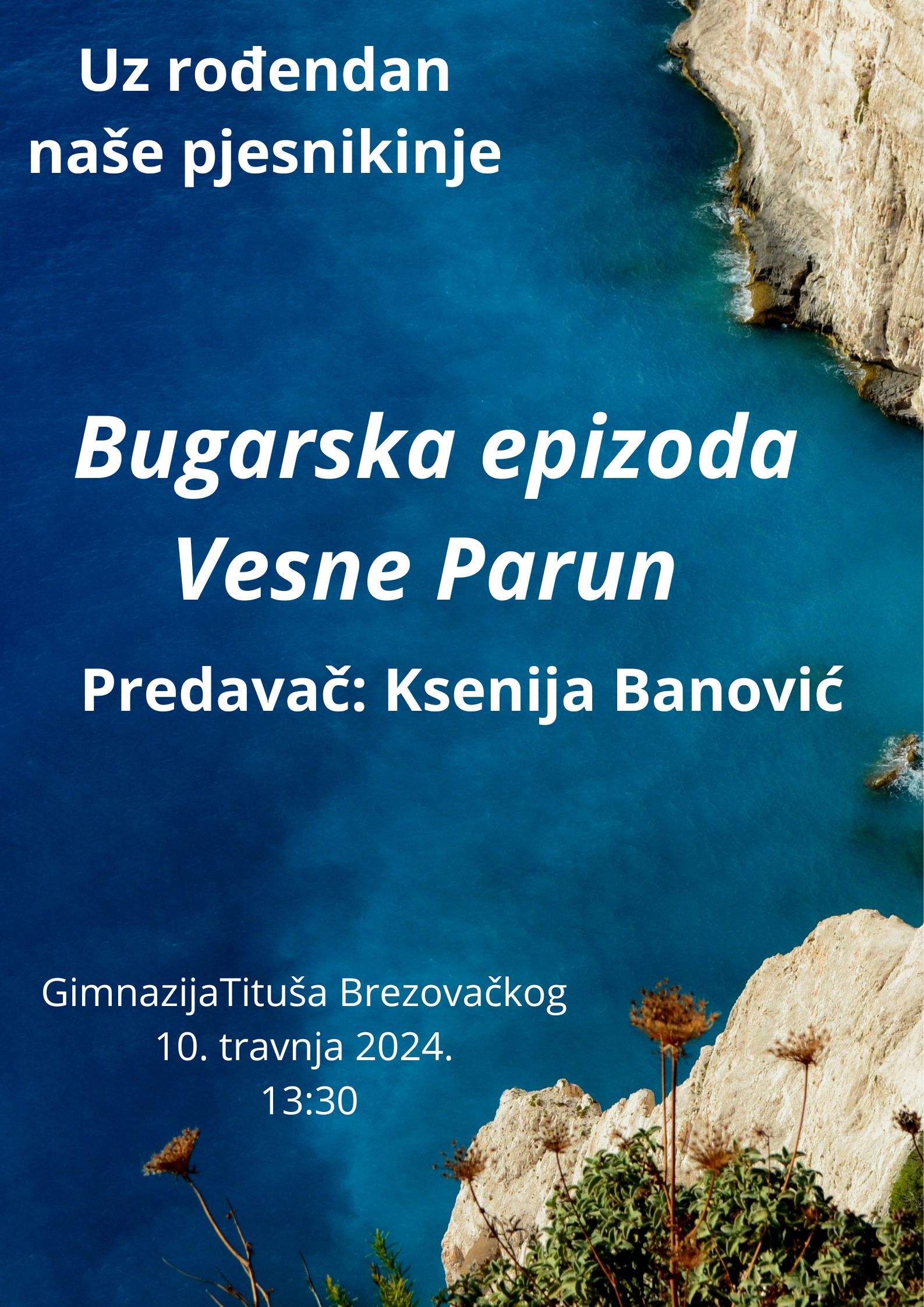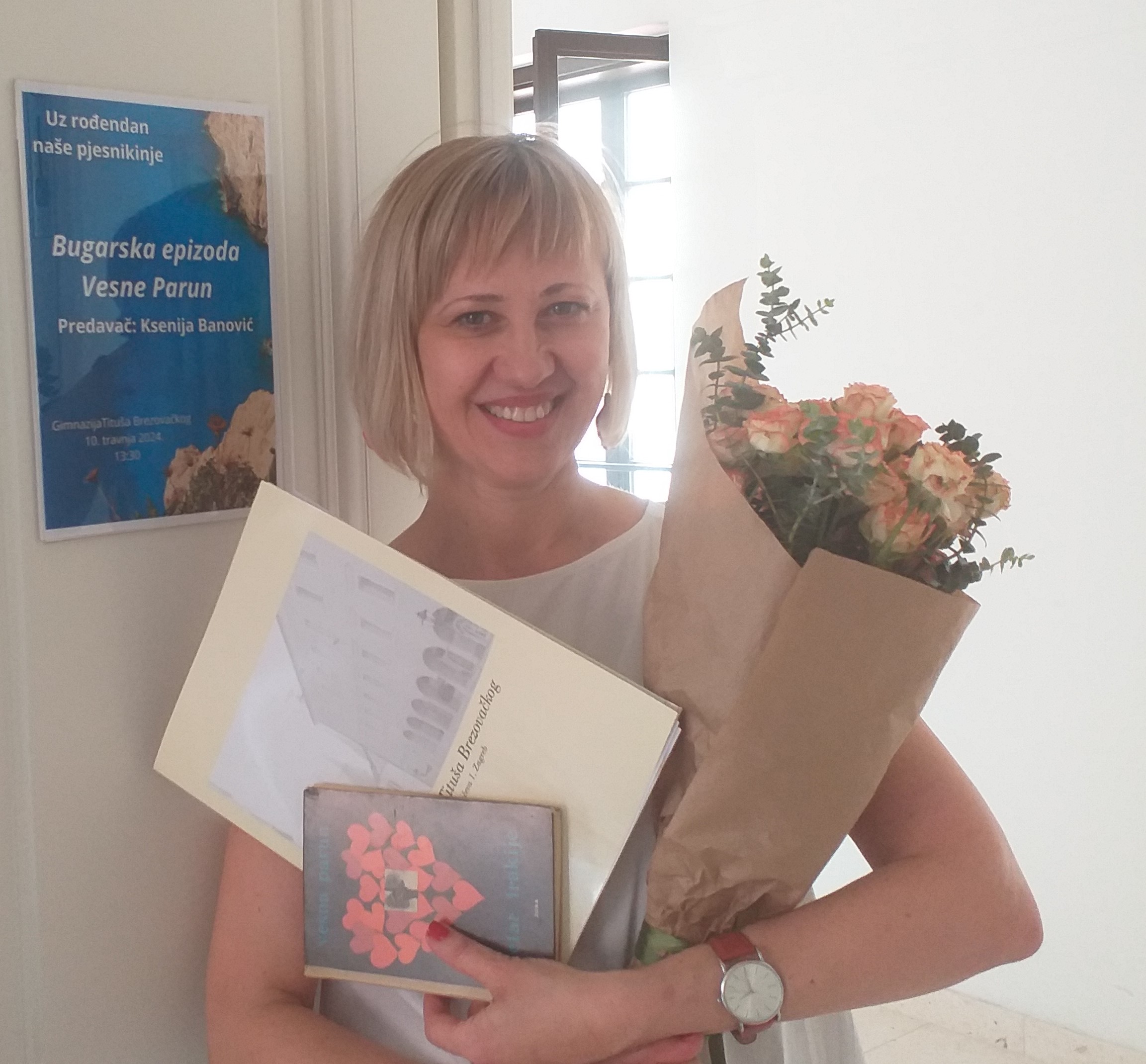 Povodom 102. rođendana Vesne Parun maturantima 4.a i 4.d razreda održano je zanimljivo predavanje Bugarska epizoda Vesne Parun. Gost predavač bila je Ksenija Banović, profesorica hrvatskoga jezika i književnosti, diplomirana knjižničarka i poznata prevoditeljica s bugarskoga jezika.