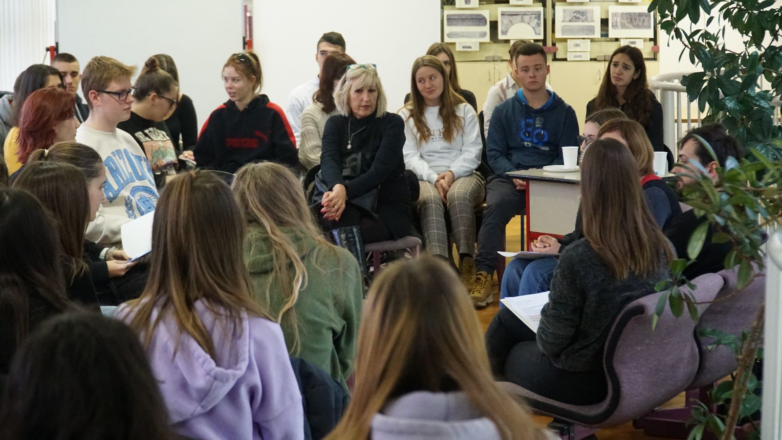 U okviru Male tribine u prostoru Društva hrvatskih književnika učenici 2.a, 2.b i 3.c družili su se s književnicom Ivanom Bodrožić.