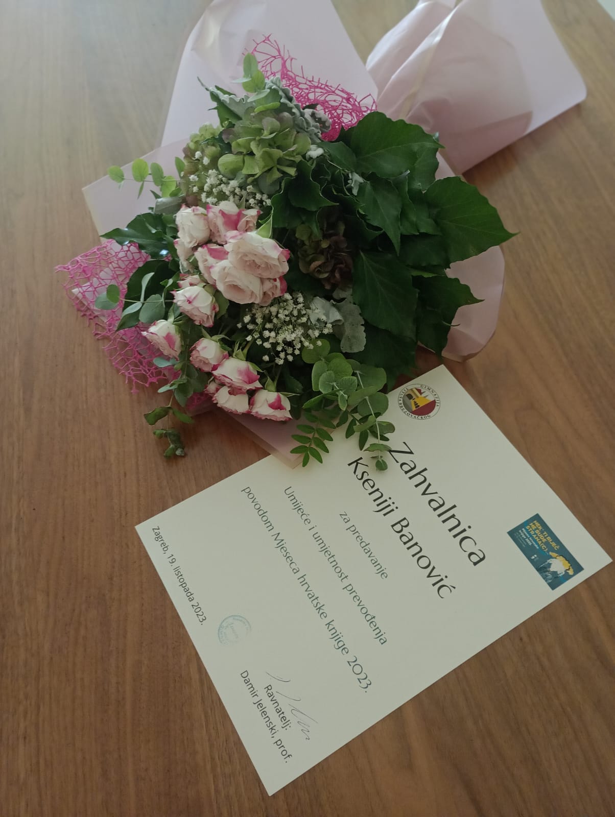 Tijekom izuzetno stručnog, zanimljivog i poučnog predavanja saznali smo kakvi se izazovi nalaze pred prevoditeljem i na koje sve prepreke nailazi na putu od autora do izdavača. Ksenija Banović naglasila je da prevoditeljski posao podrazumijeva i umijeće i umjetnost, traži dobro poznavanje leksičke, jezične i gramatičke osobitosti jezika s kojega se prevodi, ali i poznavanje kulture, civilizacije i običaja naroda koji tim jezikom govori. Prevođenje je i umjetnost jer svako prevedeno djelo dobiva novi umjetnički rukopis.
