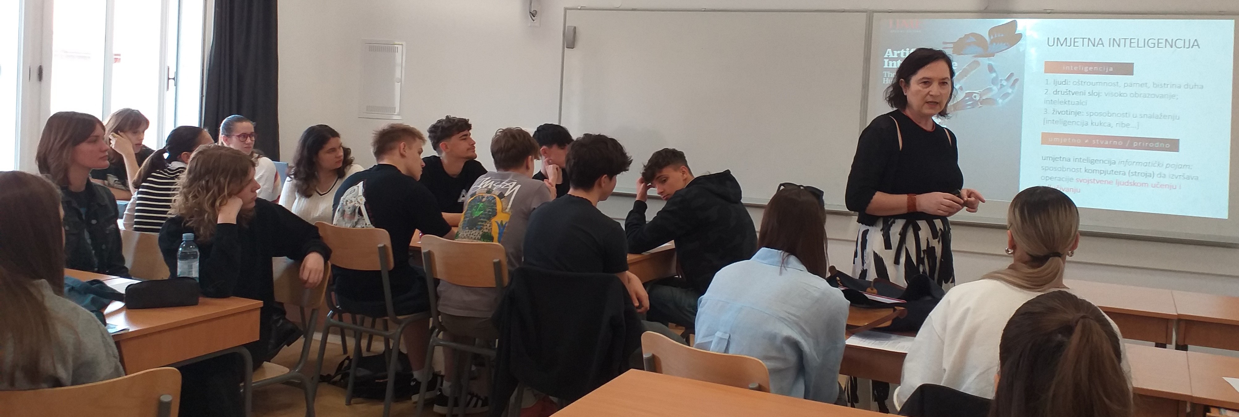 Povodom Dana medijske pismenosti 2024. učenicima 3. e razreda održano je izuzetno zanimljivo predavanje i radionica na temu umjetne inteligencije Mogu li strojevi misliti?